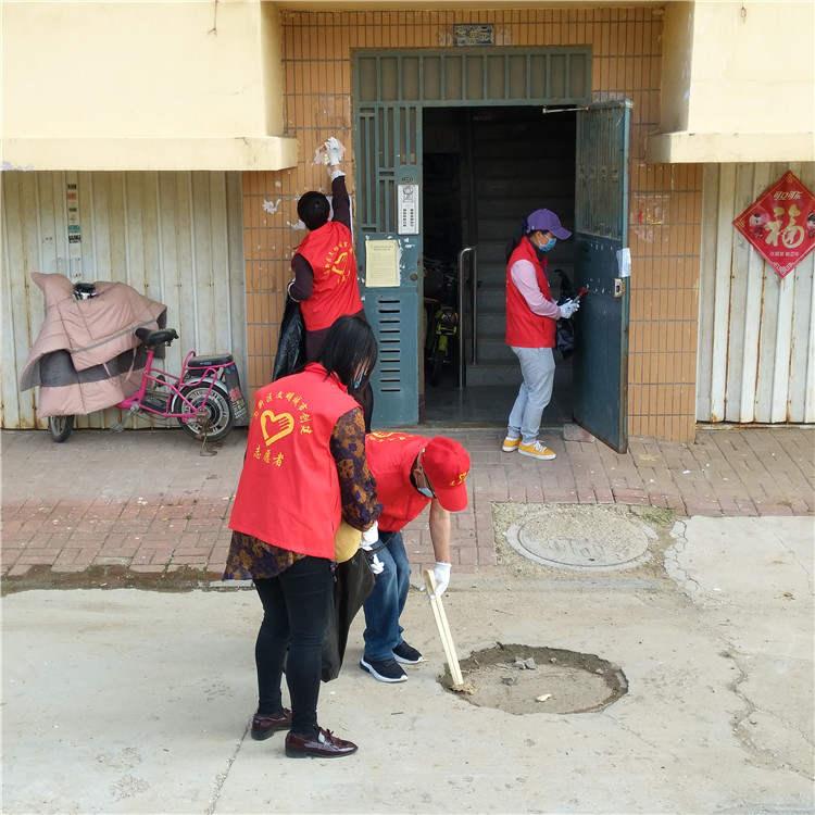党员干部们不怕苦、不怕累,个个干劲十足,集中精力对卫生死角进行清理,大家手持扫帚、小铲子、垃圾袋等工具,将路面上的纸屑、杂草、垃圾等进行了清扫,对墙面等处乱贴的小广告进行了清除,经过辛苦劳动,小区环境有了良好改善。