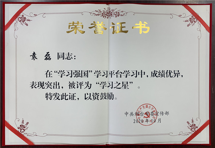 本站讯 近日,烟台市委宣传部在全市组织开展了2020年第三季度“学习之星”评选活动。经过层层筛选上报,我校孙龙湖、袁磊、孙志颖三位党员同志获此殊荣。