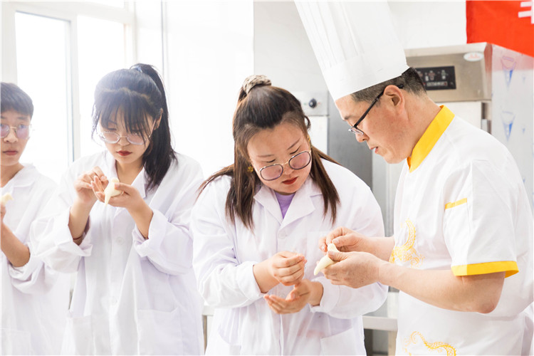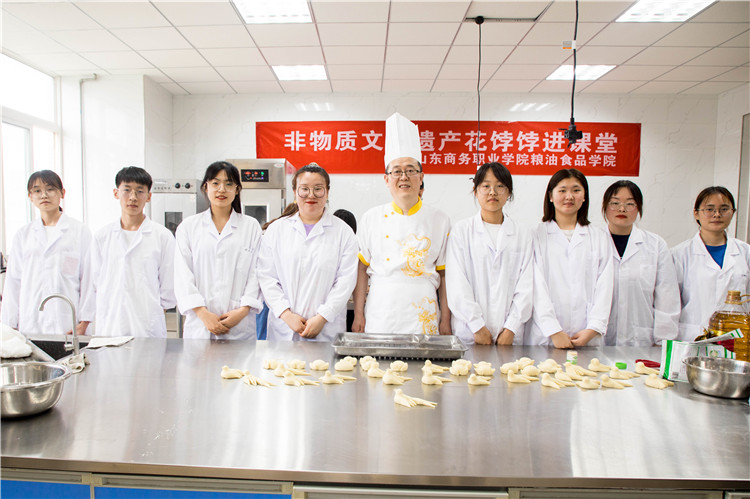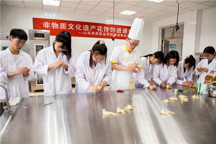 会后,非物质文化遗产胶东花饽饽习俗传承人林荣涛与我校部分学生进行了一次别开生面的技艺展示和现场教学。