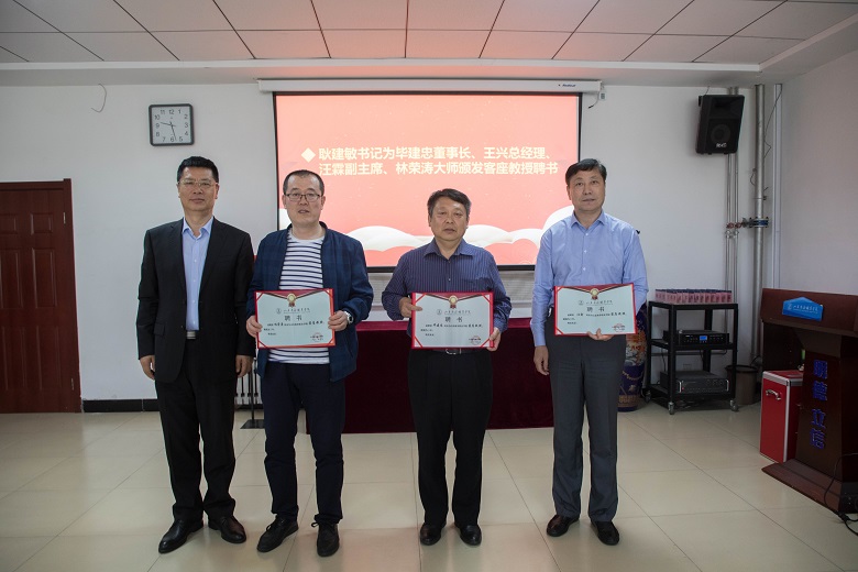 仪式上,耿建敏、毕建忠分别代表学校和山东益养德康食品科技有限公司为胶东花饽饽非遗文化产业研究院揭牌。耿建敏为毕建忠、王兴、汪霖、林荣涛颁发了客座教授聘书。张云生宣读了《关于成立胶东花饽饽非遗文化产业研究院的通知》并代表学校发言,他提出研究院在未来的工作中,一要发挥研究院各职能机构的合力,做到目标同向,工作同步,力量同发;二要将研究院建设成为全省乃至全国非遗文化产业研究的高水平智库;三要将研究院建设成为胶东花饽饽非遗文化传承、推广和辐射的中心。