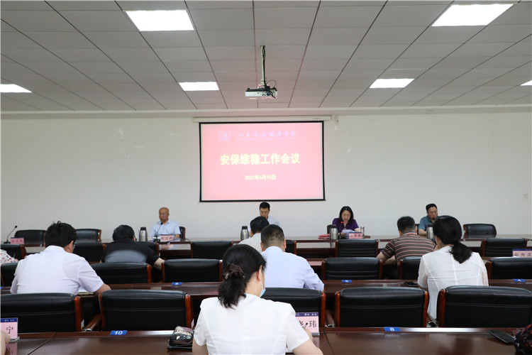 本站讯  6月15日上午,我校召开安保维稳工作会议。学校党委班子成员,各处室、教学部、济南校区负责人,各二级学院党政负责人参加了会议。