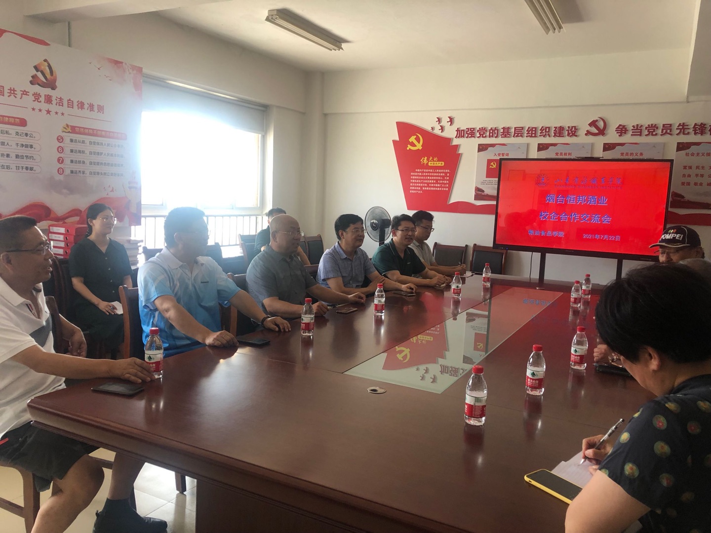 本站讯 7月22日上午,烟台恒邦酒业董事长王家好一行四人来我校交流考察,学校副校长陶传蔚,粮油食品学院孙龙湖及各专业负责人参加座谈交流。