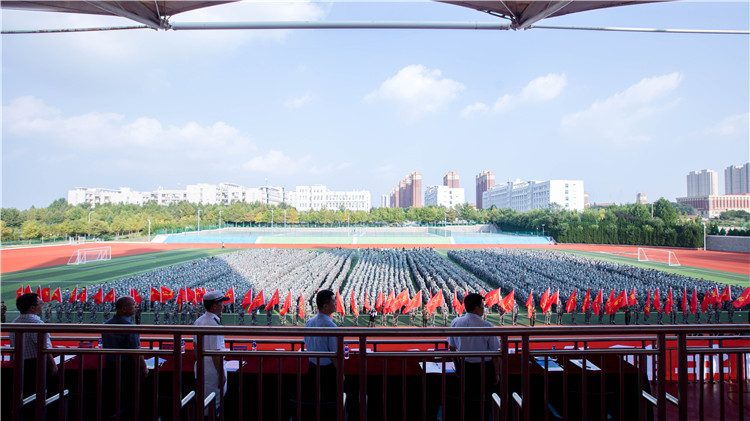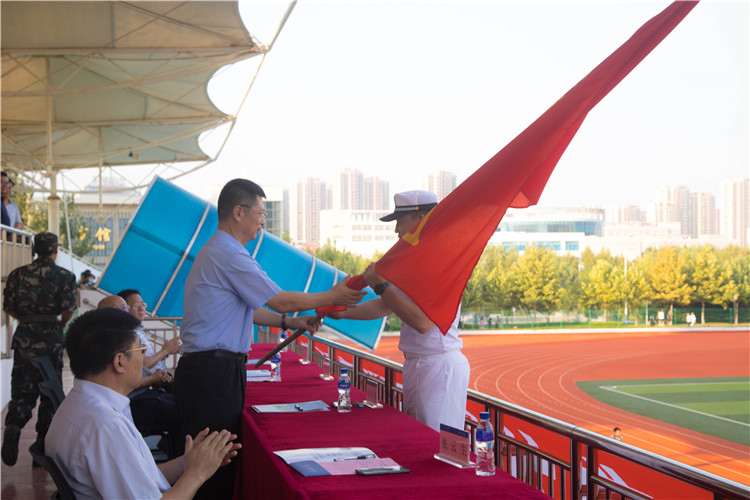 典礼上,新生教师代表、新生代表相继发言,曲军晖老师领誓新生入学宣誓,陶传蔚宣读新生军训团成立文件,耿建敏向军训团团长授军训团团旗,整场活动在军训团团长的总结发言中落下帷幕。(宣传统战部)