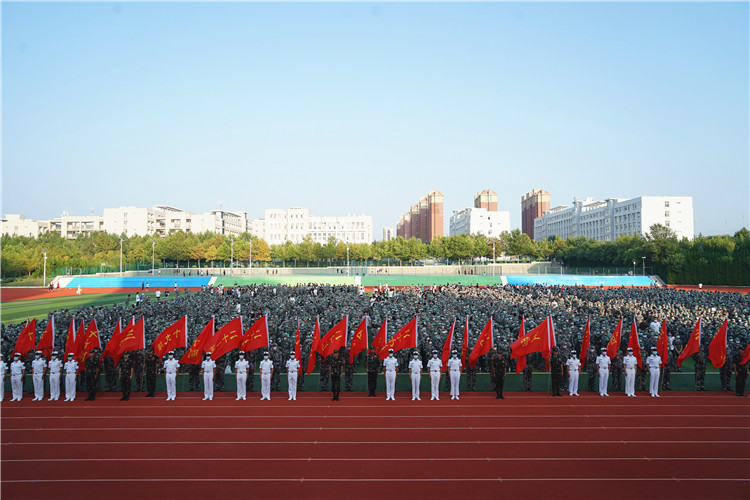 本站讯 9月10日下午,我校2021级新生开学典礼暨军训启动仪式在田径场举行,校领导耿建敏、刘艳蔚、陶传蔚、张云生、张越,承接军训任务的部队领导和全体教官出席典礼,学校二级学院党政领导、全体辅导员、学生工作处(团委)全体人员、其他教职工代表、老生代表等人员参加。典礼由学校党委副书记刘艳蔚主持。