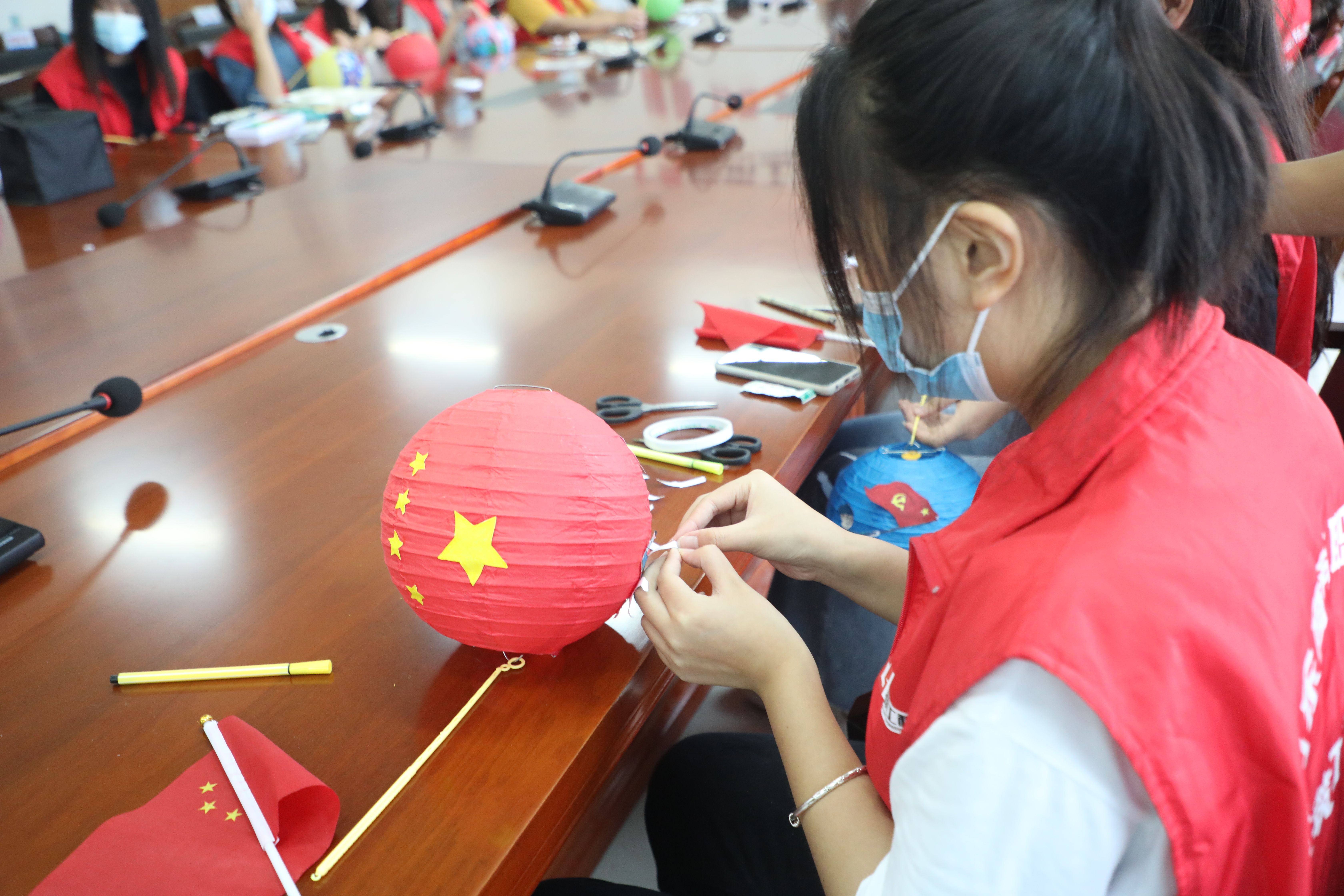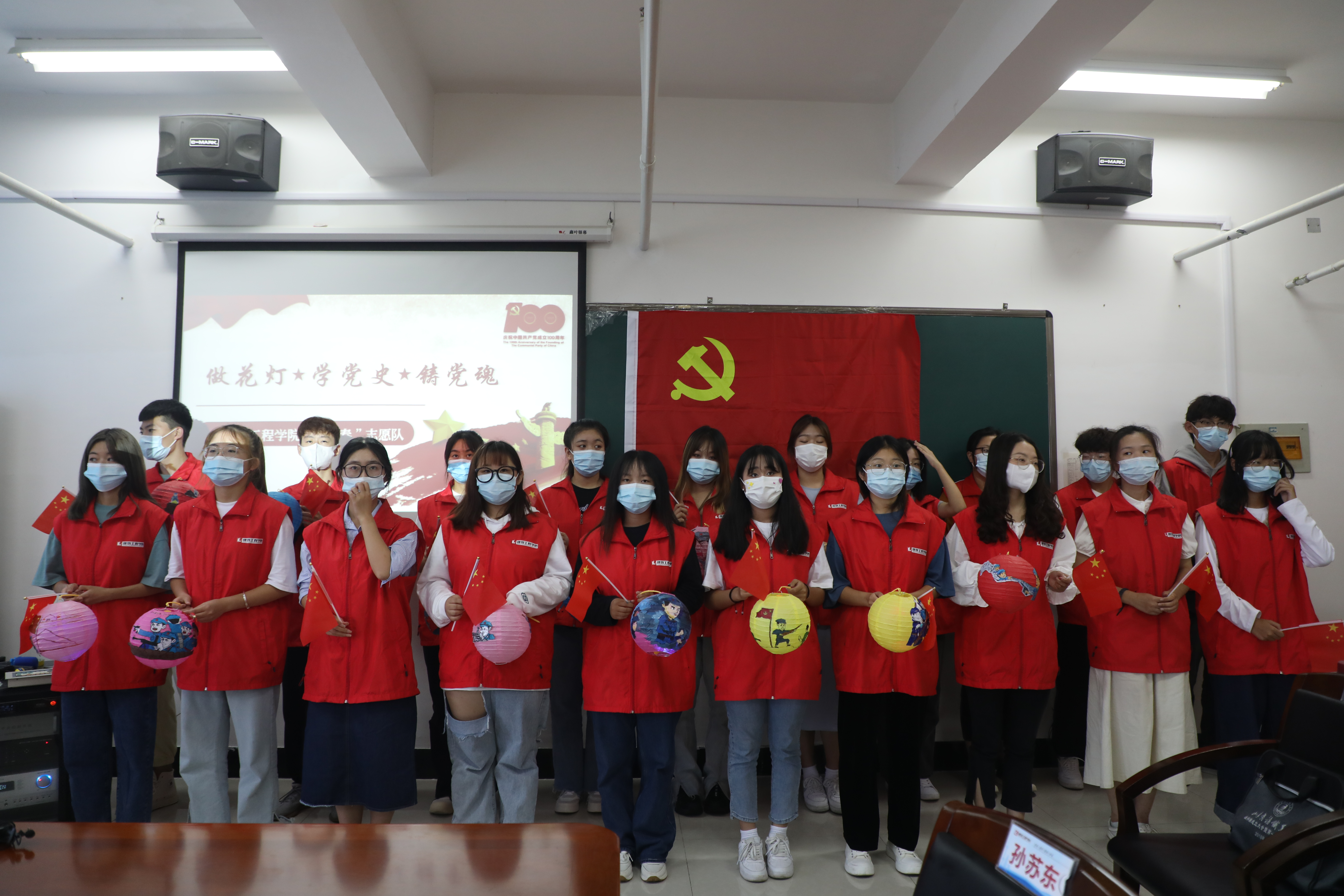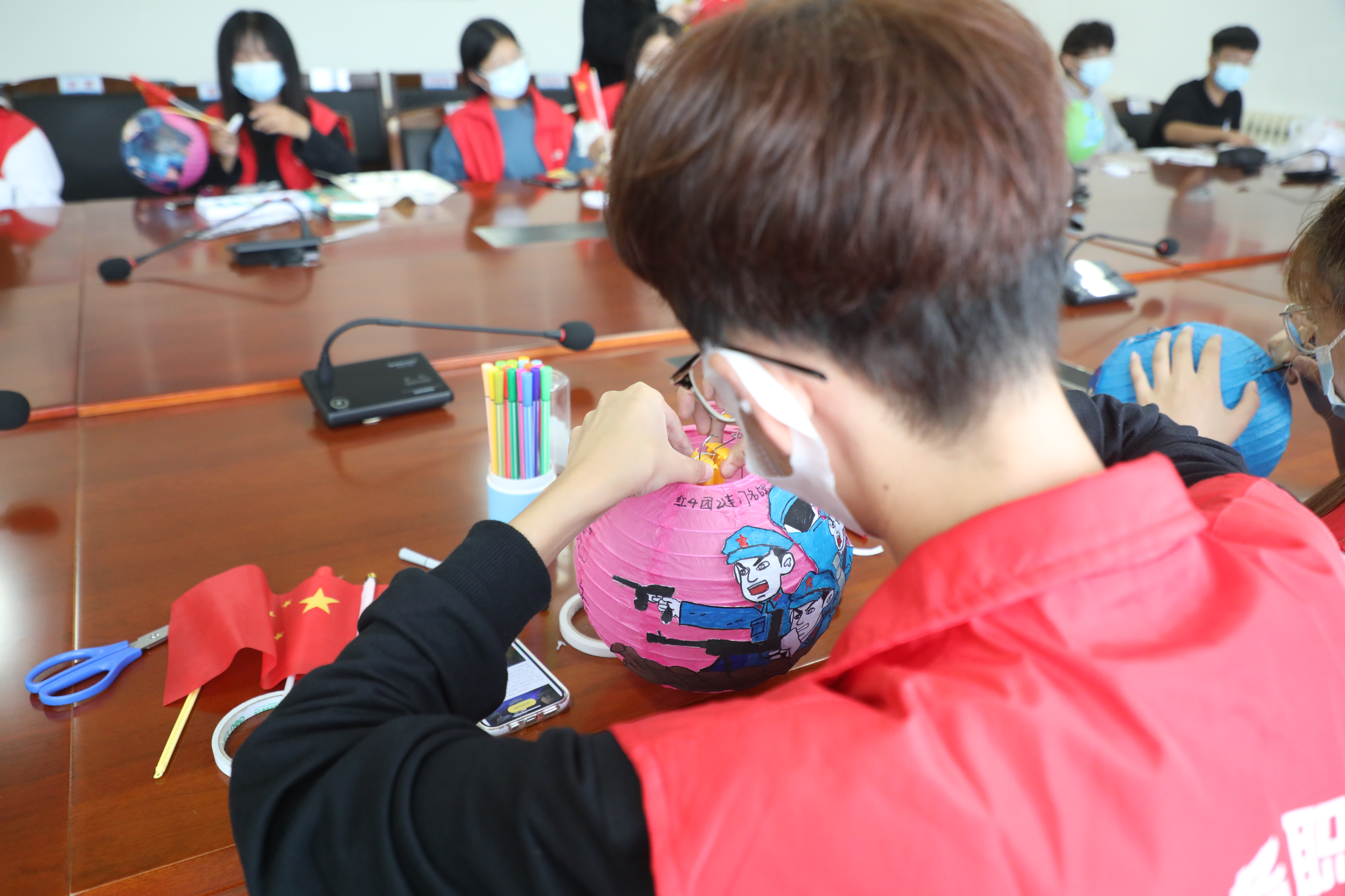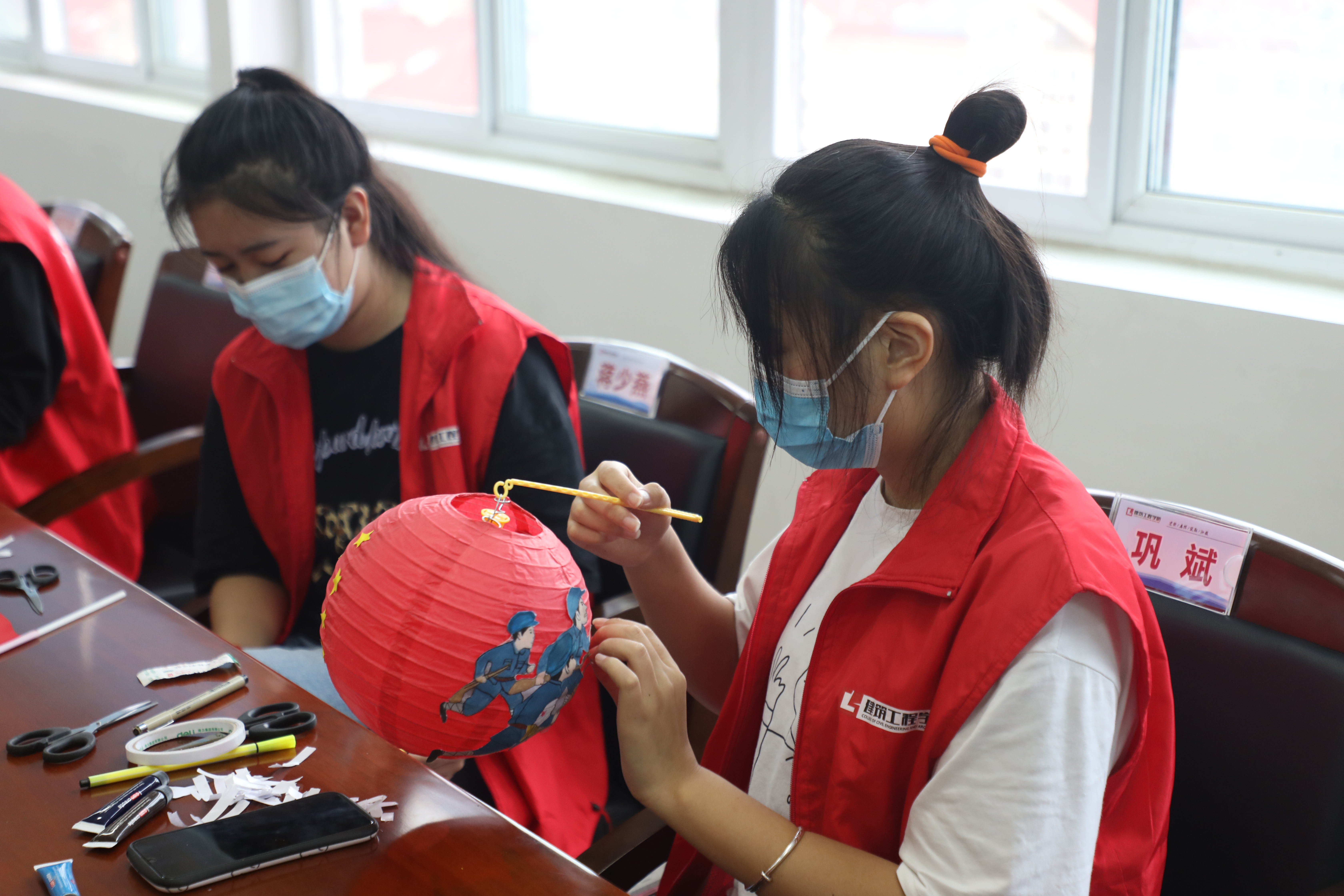 9月20日上午,在建筑工程学院“花灯讲党史”活动中,同学们在指导老师的带领下,将党史学习教育与中秋花灯制作相结合,在花灯上绘制党史故事。同学们将“五星红旗”“红船”“红军长征”“开国大典”“神舟十二号”等元素或粘贴或手绘到花灯之上,经过模型穿孔、裁剪、粘贴、搭建等一系列步骤,一个个漂亮、独特的“党史印记”花灯就活灵活现地展现在大家面前。在制作花灯的同时,同学们纷纷分享了自己制作的花灯上的党史故事。“我们都很喜欢这样新颖的、具有趣味性的党史学习教育形式。”建筑工程学院2020级学生刘一冉表示。