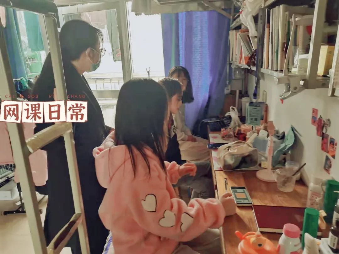 “窜宿舍”也是张丽芳的日常工作之一,她要与其他老师搭档查访学生宿舍,督促他们通风、消毒,了解学生们上网课情况及检查宿舍卫生。关心学生有没有及时跟家长联系,生活用水、饮用水使用是否方便等各方面信息,并及时反馈给相关部门及班主任。
