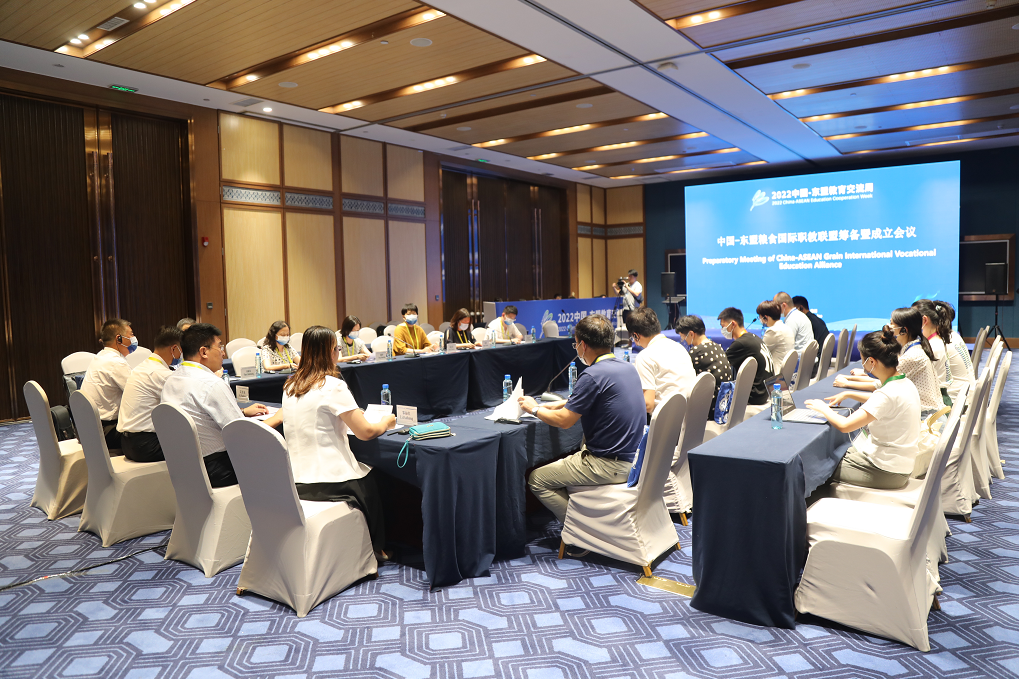 本站讯 8月25日晚,中国-东盟粮食国际职教联盟筹备暨成立会议在中国-东盟教育交流周永久会址召开。中国-东盟粮食国际职教联盟理事长、副理事长单位代表,国内外相关单位及学院相关负责人参加会议。