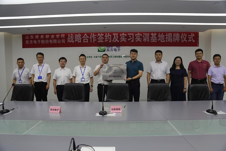 我校信息工程学院与东方电子集团于2022年建立校企合作关系,并于当年7月份签署战略合作协议,成立校企合作订单班,挂牌“山东商务职业学院信息工程学院实习实训基地”,开展人才共育、科研开发、师资队伍建设、实习实训基地建设等多层次、多形式的深入合作,合作成果丰硕。