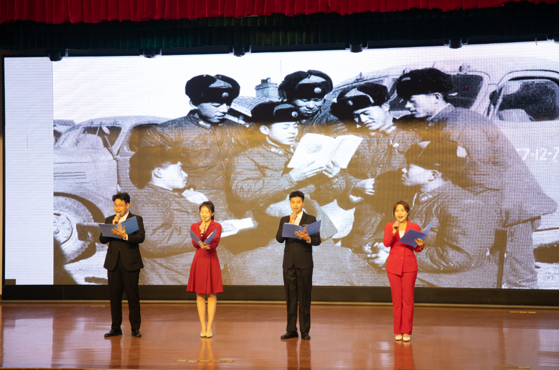 同学们现场朗诵了现代诗——《走进雷锋 学习雷锋》。烟台高新区新时代文明实践分管负责人为学校学雷锋志愿服务队授旗,各学院学雷锋志愿者代表现场进行了慷慨激昂的宣誓。