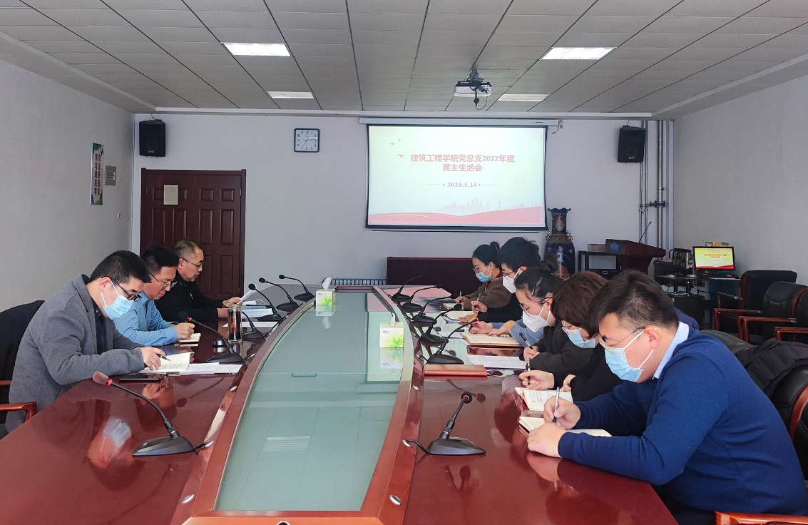 本站讯 3月14日下午,建筑工程学院党总支召开2022年度民主生活会,学校党委副书记、纪委书记张越到会指导。会议围绕“全面贯彻习近平新时代中国特色社会主义思想,深刻领悟‘两个确立’的决定性意义,增强‘四个意识’、坚定‘四个自信’、做到‘两个维护’,团结带领党员干部群众以奋发有为的精神贯彻落实党的二十大作出的重大决策部署”这一主题,党总支成员紧密联系个人思想和工作实际,认真开展了批评和自我批评。大家坚持问题导向,认真对照检查,提出改进措施,明确努力方向。