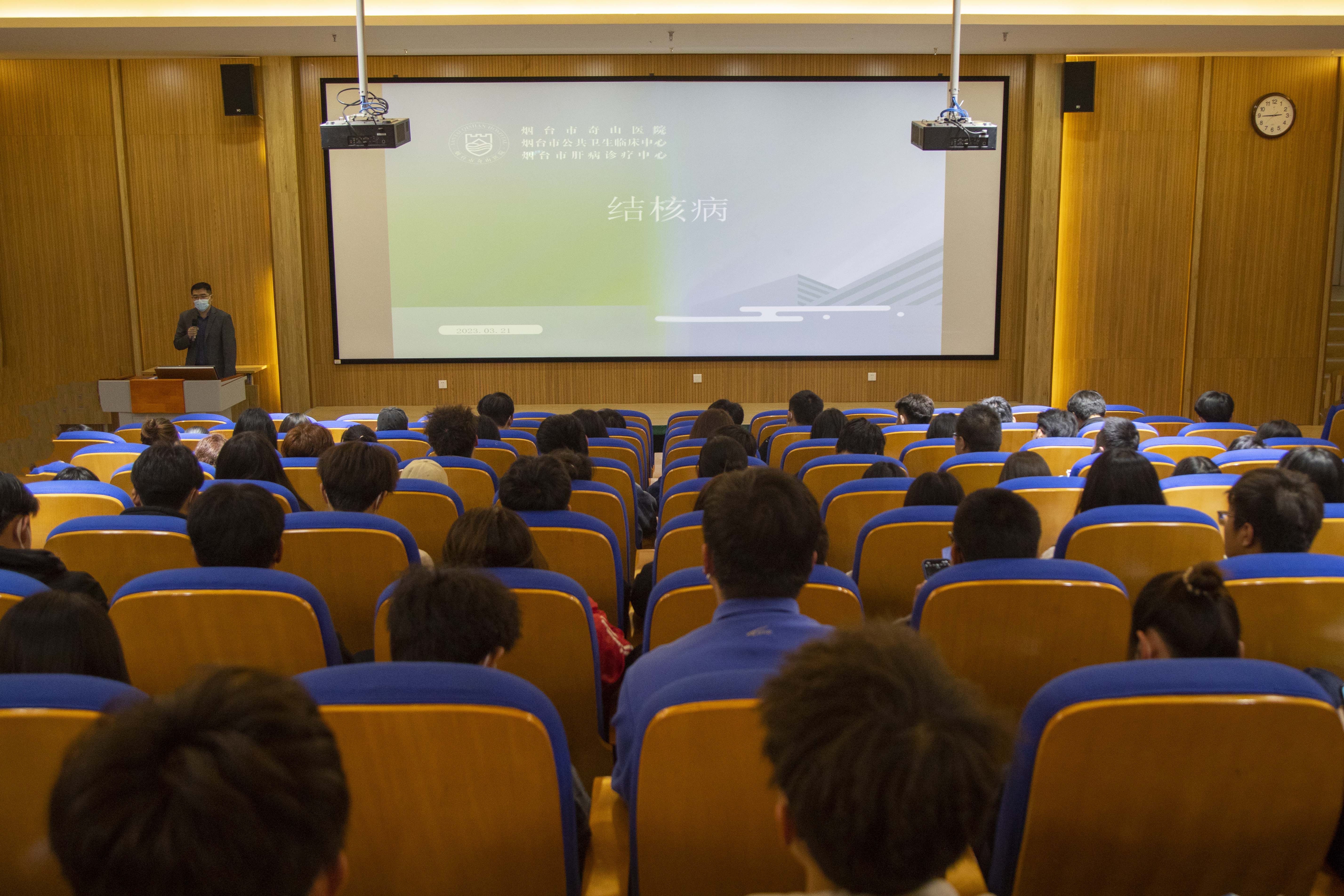 本次活动邀请烟台市奇山医院张广超主任为师生做肺结核防治知识专题讲座。在讲座中,张主任结合多年临床案例和生动有趣的漫画、视频深入浅出地讲解了结核病的起源、典型症状、传播途径、诊断方法、治疗及预防措施等相关知识,重点强调出现咳嗽、咳痰、咯血、发热、胸痛、盗汗、乏力、食欲差、体重下降等应引起重视并尽早就医,倡导广大师生正确认识肺结核的危害,掌握结核病防治知识,养成健康文明的生活方式,呼吁大家积极行动起来,采取有效措施,坚决预防结核病在校园内传播。现场还进行了条幅签名、发放宣传材料、招募志愿者等活动。