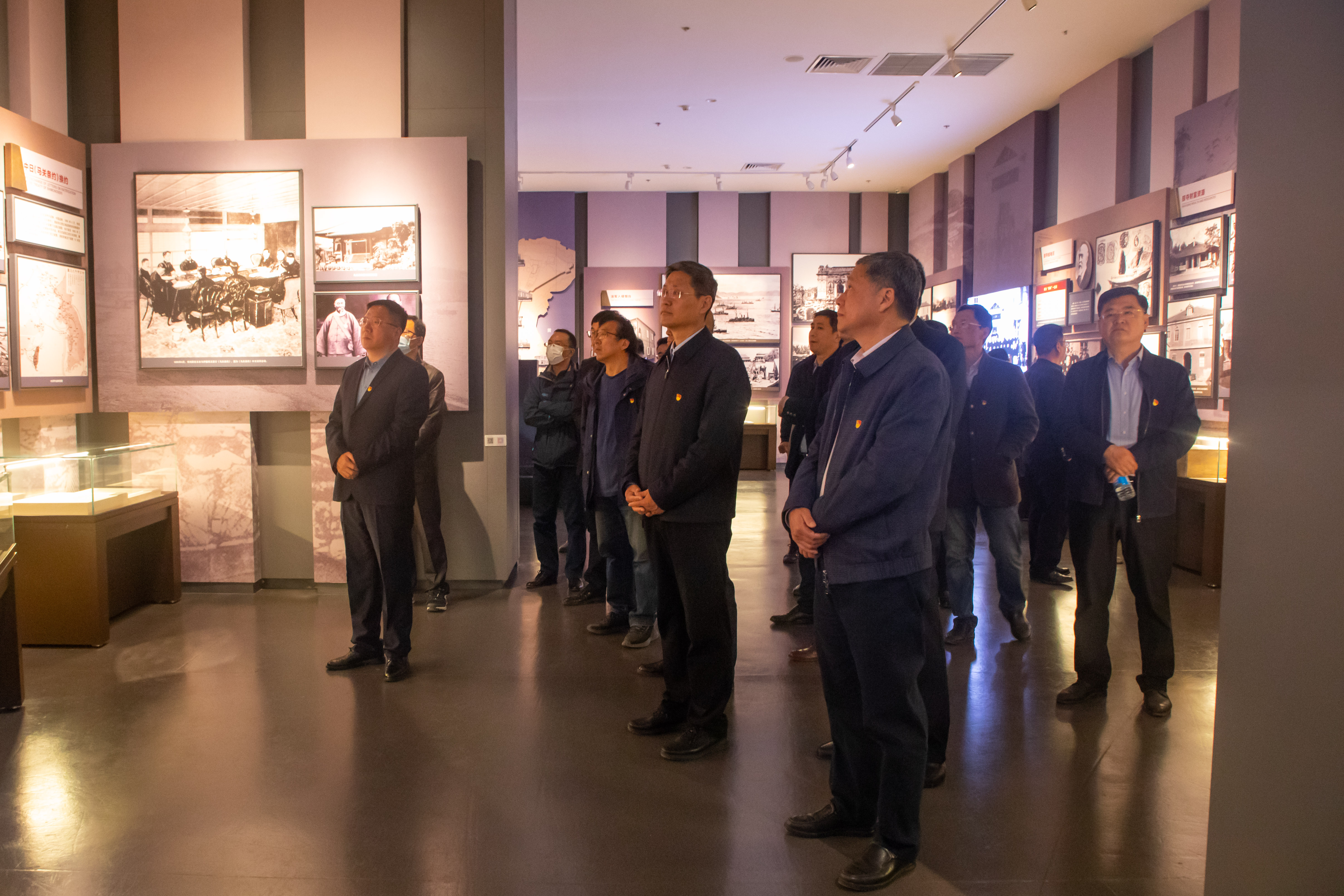 胶东红色文化陈列馆是胶东党性教育基地的主体馆、核心馆,分为胶东近代屈辱与抗争史、革命斗争史、社会主义革命和建设史、改革开放发展历程、建设中国特色社会主义新征程等5个展厅,全面展示了胶东不同时期争先、领先、走在前列的大事要事。回顾了胶东百年红色文化,追忆了革命发展艰辛历程,深刻彰显了“敢为天下先,奋勇走在前”的胶东精神。全体党员干部还集体观看了CAVE沉浸式多媒体演绎《飞跃烟台》和红色影片《奋勇争先勇立潮头》,并开展重温入党誓词活动。