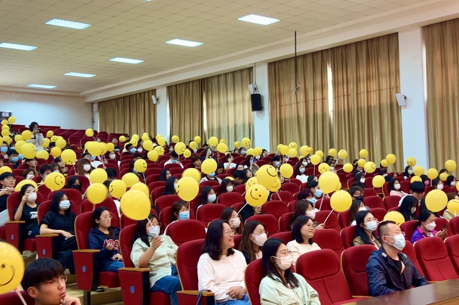 启动仪式上,同学们手捧笑脸气球,观看舞蹈表演《你笑起来真好看》,大学生心理健康教育中心刘海霞老师作《后疫情时代的心理健康》主题讲座。