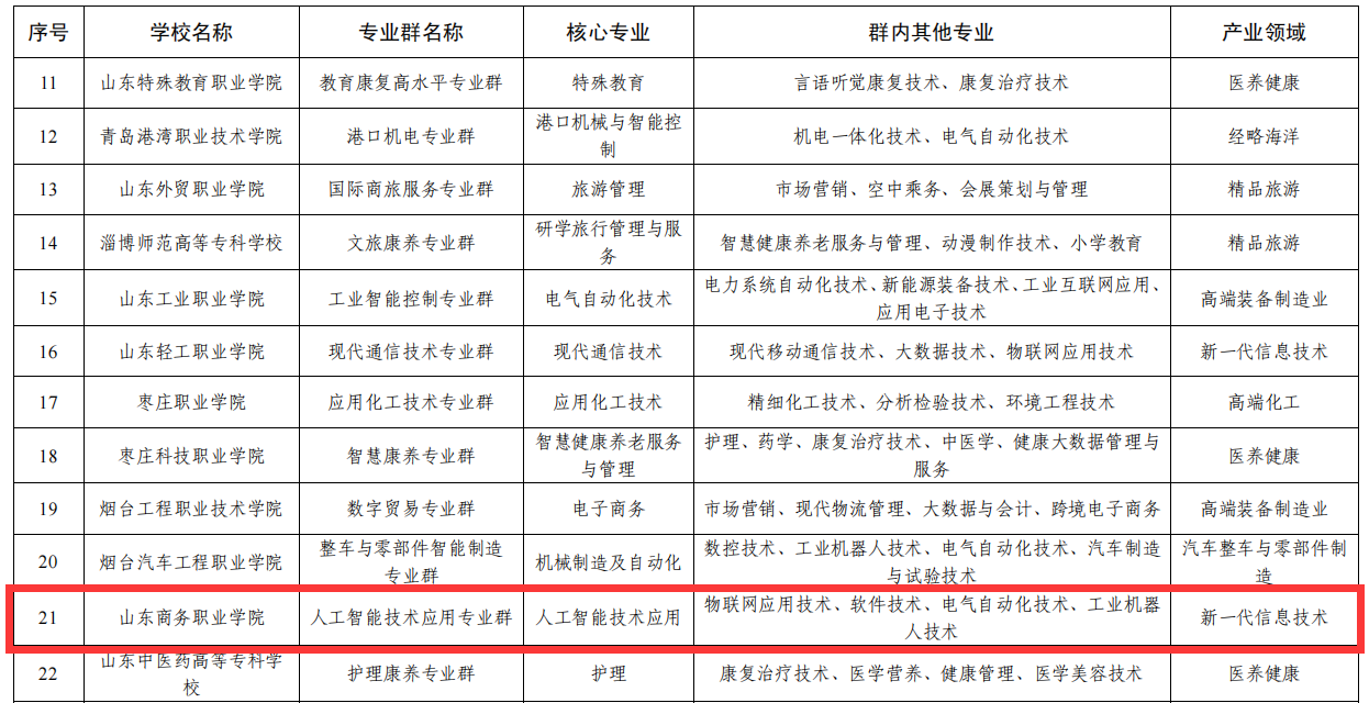 本站讯 近日,省教育厅公布山东省第二批高等职业教育高水平专业群建设项目名单,我校人工智能技术应用专业群榜上有名,这是我校第3个获批立项的省级高水平专业群。