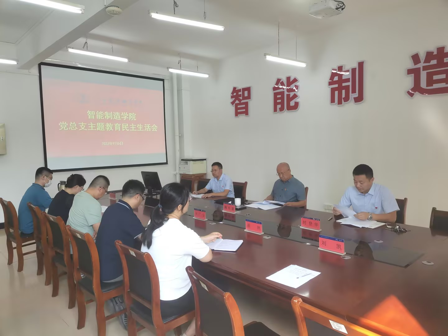 本站讯 9月5日,智能制造学院党总支召开学习贯彻习近平新时代中国特色社会主义思想主题教育专题民主生活会。深入开展党性分析,认真展开批评和自我批评,深入查摆存在问题,剖析问题原因并明确整改方向。学校党委委员、副校长陶传蔚到会指导。学院党总支书记时登华主持会议。党总支领导班子成员参加会议。