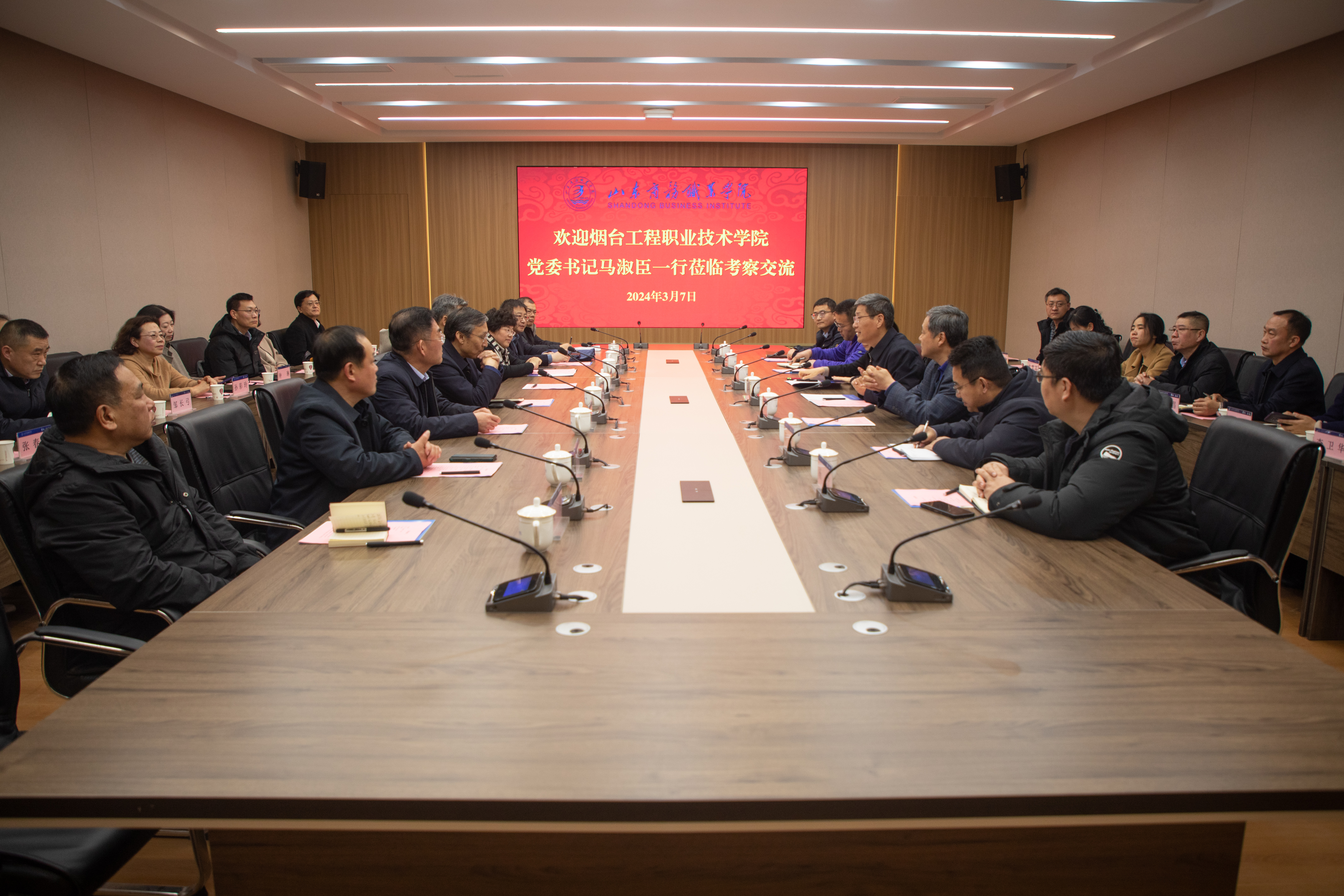 本站讯 3月7日上午,烟台工程职业技术学院党委书记马淑臣,党委副书记、院长王作鹏一行29人到我校考察交流。党委书记孙云茂,党委副书记、校长王发明,党委委员、副校长于邢香,党委委员、组织人事处处长邵军参加交流。