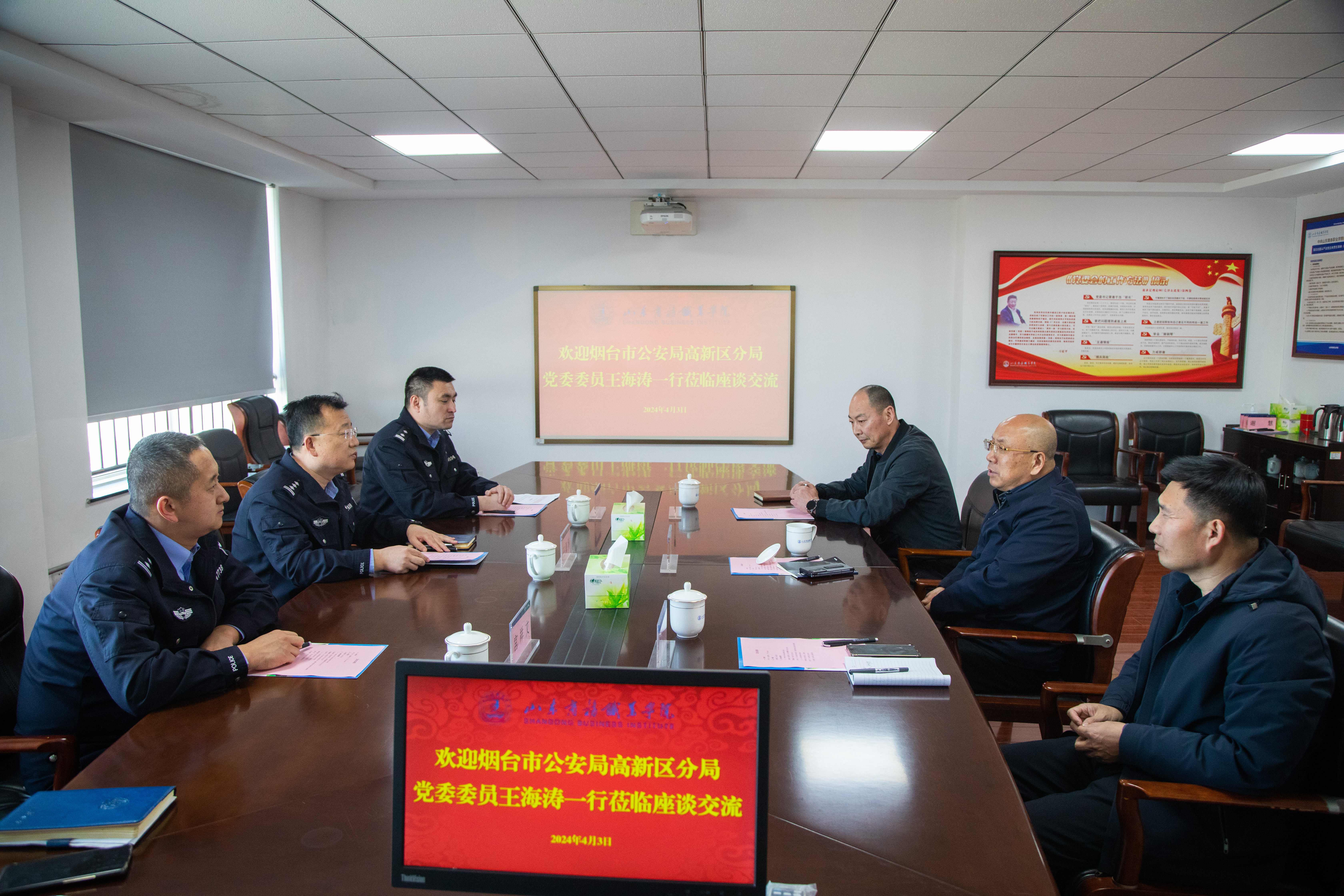 本站讯 4月3日下午,烟台市公安局高新区分局党委委员王海涛、刑侦大队大队长马腾蛟、马山派出所教导员宫祥文一行三人到我校走访座谈。学校党委委员、副校长陶传蔚、学生工作处(团委)、经济管理学院、安全保卫处负责同志参加座谈。