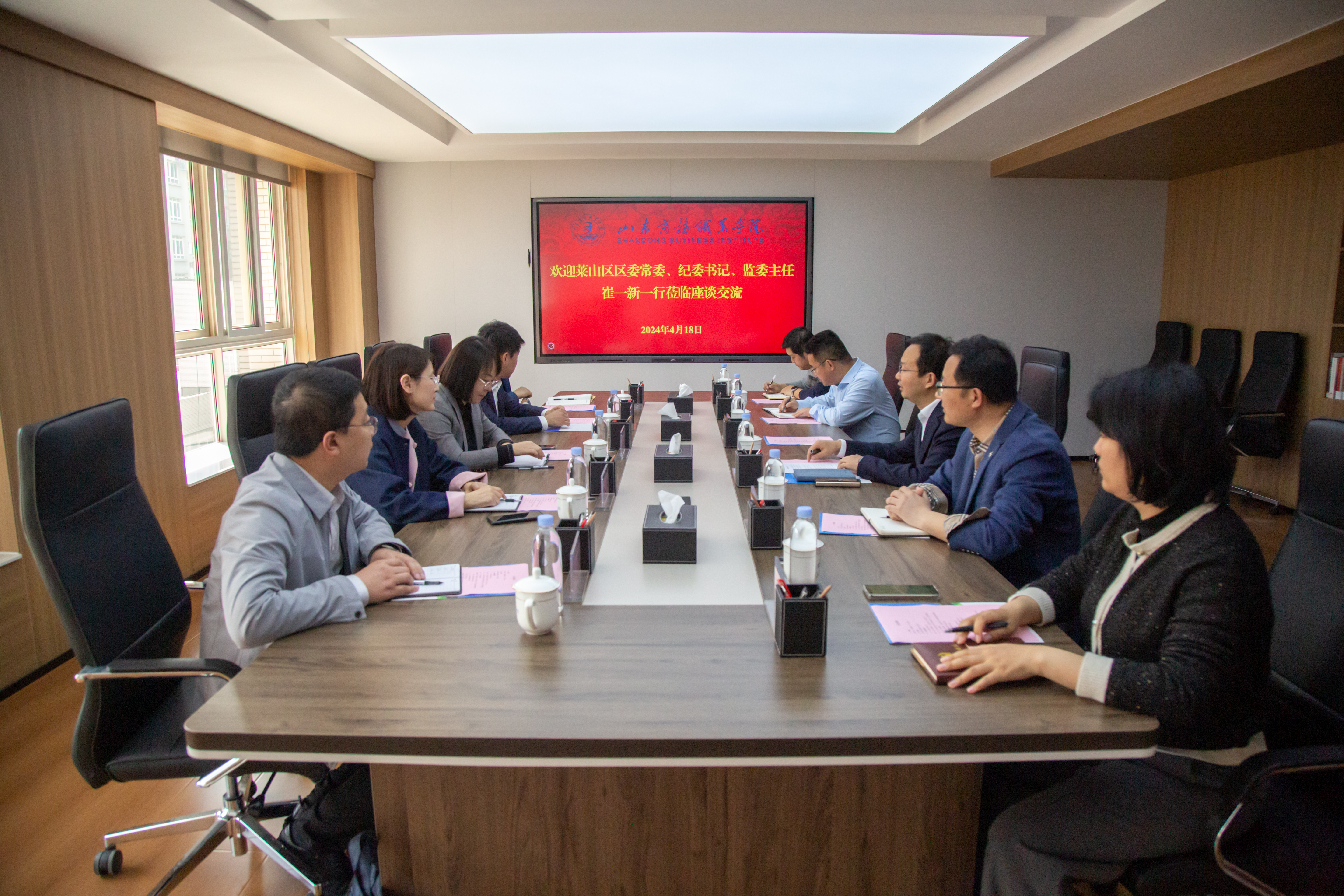 本站讯 4月18日下午,莱山区委常委、纪委书记、监委主任崔一新一行来我校座谈交流。学校党委委员、纪委书记魏才奎主持座谈会,党委委员、组织人事处处长邵军,全体纪检监察干部参加座谈交流。