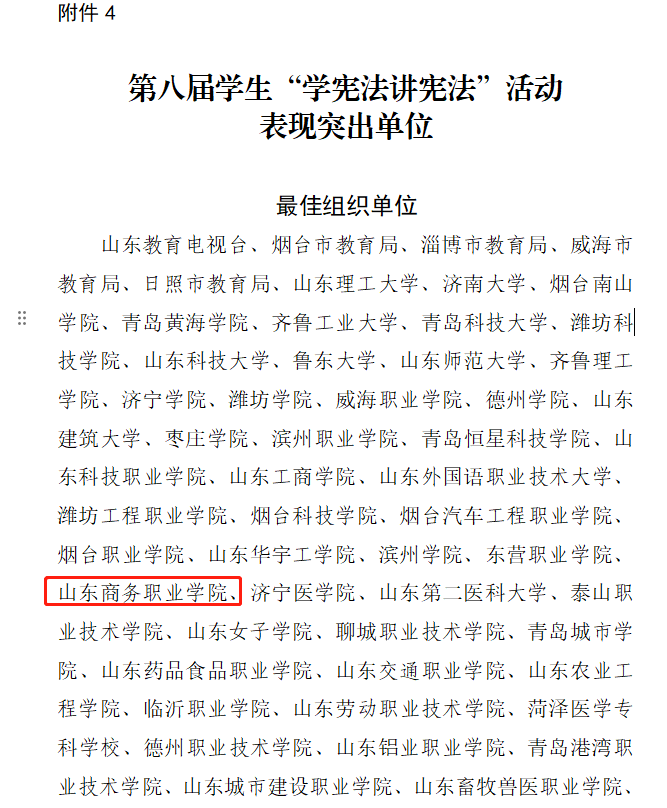 本站讯 近日,山东省教育厅公布第八届全省学生“学宪法 讲宪法”活动结果,我校荣获“最佳组织单位奖”。