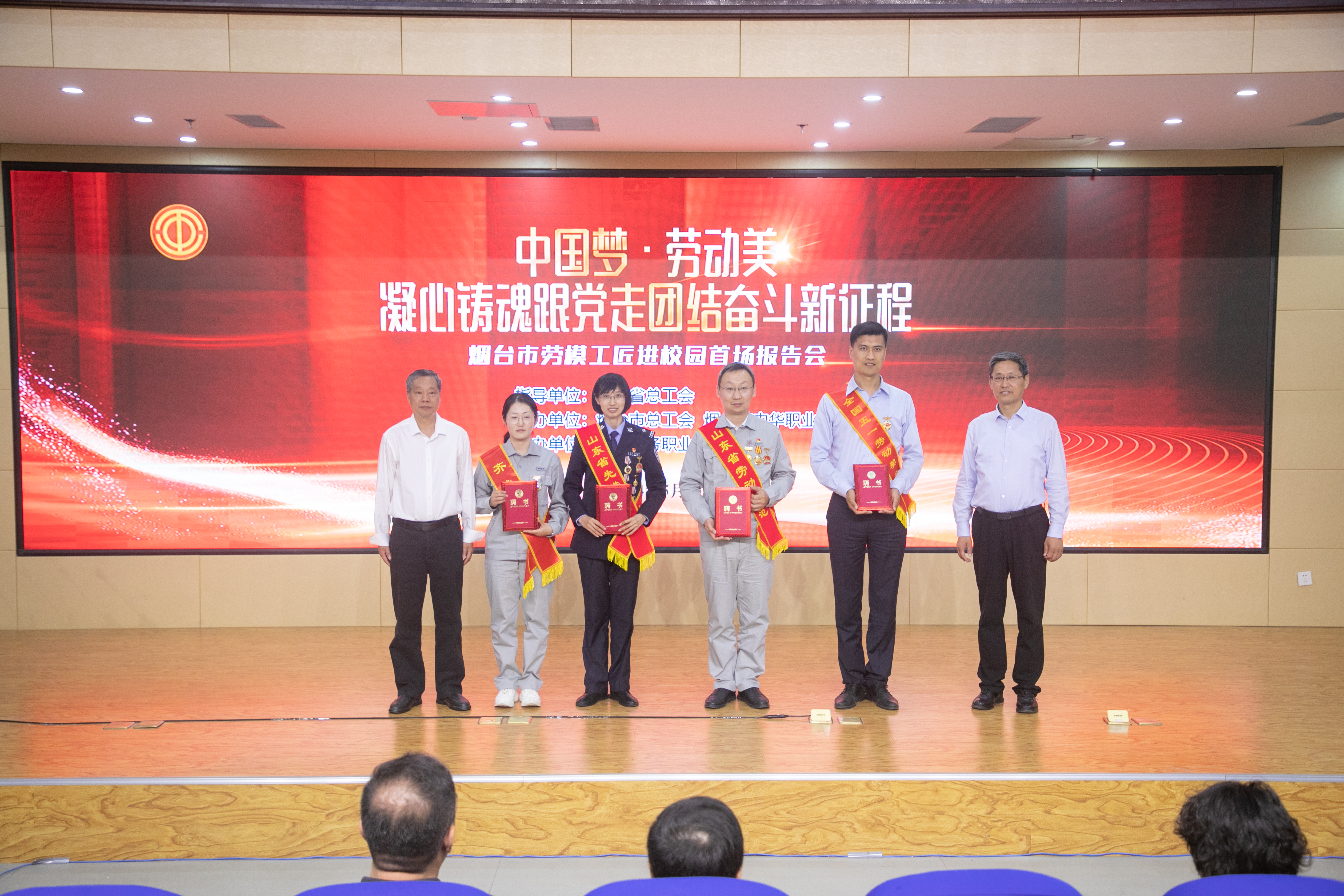 本次活动邀请到“全国五一劳动奖章”获得者、烟台大工匠、山东港口烟台港集团有限公司客运分公司班长朱宝,“山东省劳动模范”“齐鲁工匠”、山东核电设备制造有限公司生产技术部焊工管理室高级主管刘伟,“山东省先进工作者”、烟台市公安局海岸警察支队养马岛派出所民警曹园媛,“山东省五一劳动奖章”获得者、山东核电设备制造有限公司电焊工徐颖慧到校宣讲,让师生们近距离感受劳模风采和工匠精神。