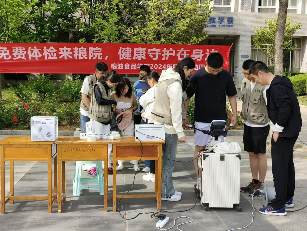 开展免费体检,为健康保驾护航。粮油食品学院在中心大道举办了全校师生免费体检活动,采用独具特色的inbody人体成分分析仪为全校师生进行了骨骼肌量、体脂率、细胞外水分比率、SMI、内脏脂肪面积、成长发育曲线、血压等指标的测量,并为体检的师生们生成了体质个人分析报告。