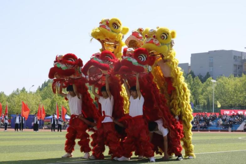 绽放青春活力,彰显职教风采。学校运动会期间,作为职教周活动其中的一项舞狮表演和团体操表演,赢得了全校师生的阵阵掌声。舞狮表演者们身着华丽的狮头狮皮,在激昂的鼓点中舞动身体,仿佛真正的狮子在场上奔跑、跳跃。舞狮和团体操表演不仅巧妙地融入了中国传统文化元素,让学生在欣赏表演的同时,感受到了中华文化的博大精深,也展示出当代大学生的青春活力和团队协作能力。