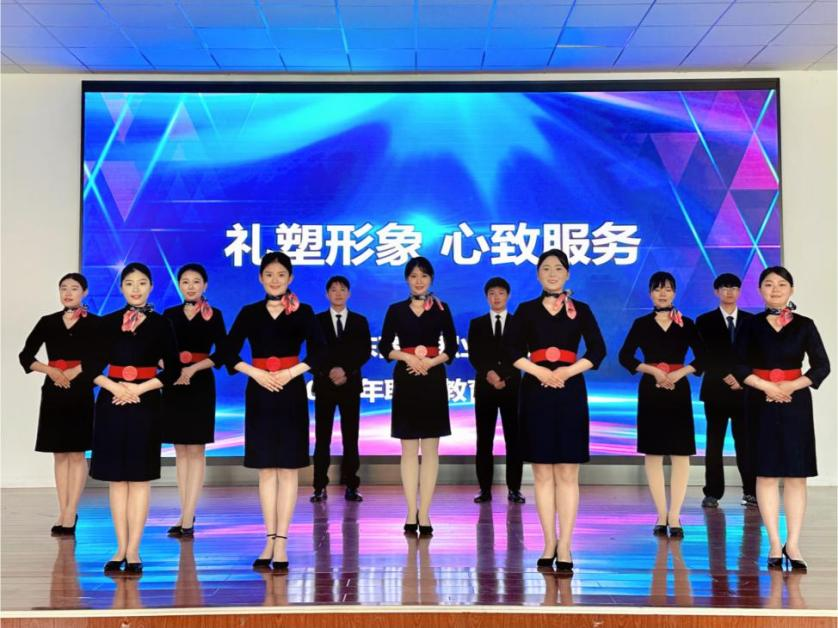 展示职业标准,塑造职业形象。文化旅游学院举办了“礼塑形象,心致服务”礼仪风采展示,活动现场身着深蓝色制服的女生与黑色商务正装的男生个个身姿挺拔,陆续向观众呈现了标准的引导礼仪、微笑礼仪、仪容仪表礼仪、仪态礼仪等各种旅游岗位服务礼仪规范动作。
