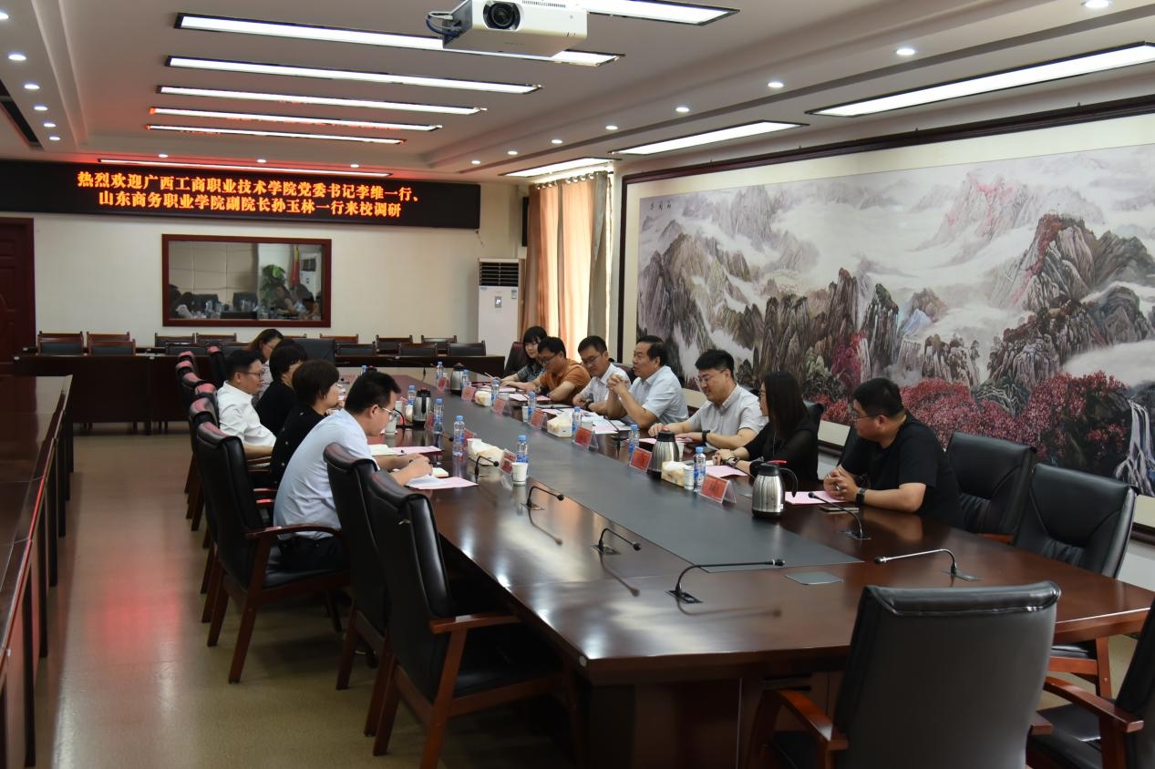 在座谈会上,江西工业贸易职业技术学院党委副书记彭锐对孙玉林一行的到来表示欢迎,介绍了江西工业贸易职业技术学院的“五粮文化育人”教育理念。孙玉林介绍了我校基本情况和学校的四大特色工程,认为两校在办学理念、专业特色等方面有着诸多相似之处,希望通过此次交流能够相互借鉴、共同进步。