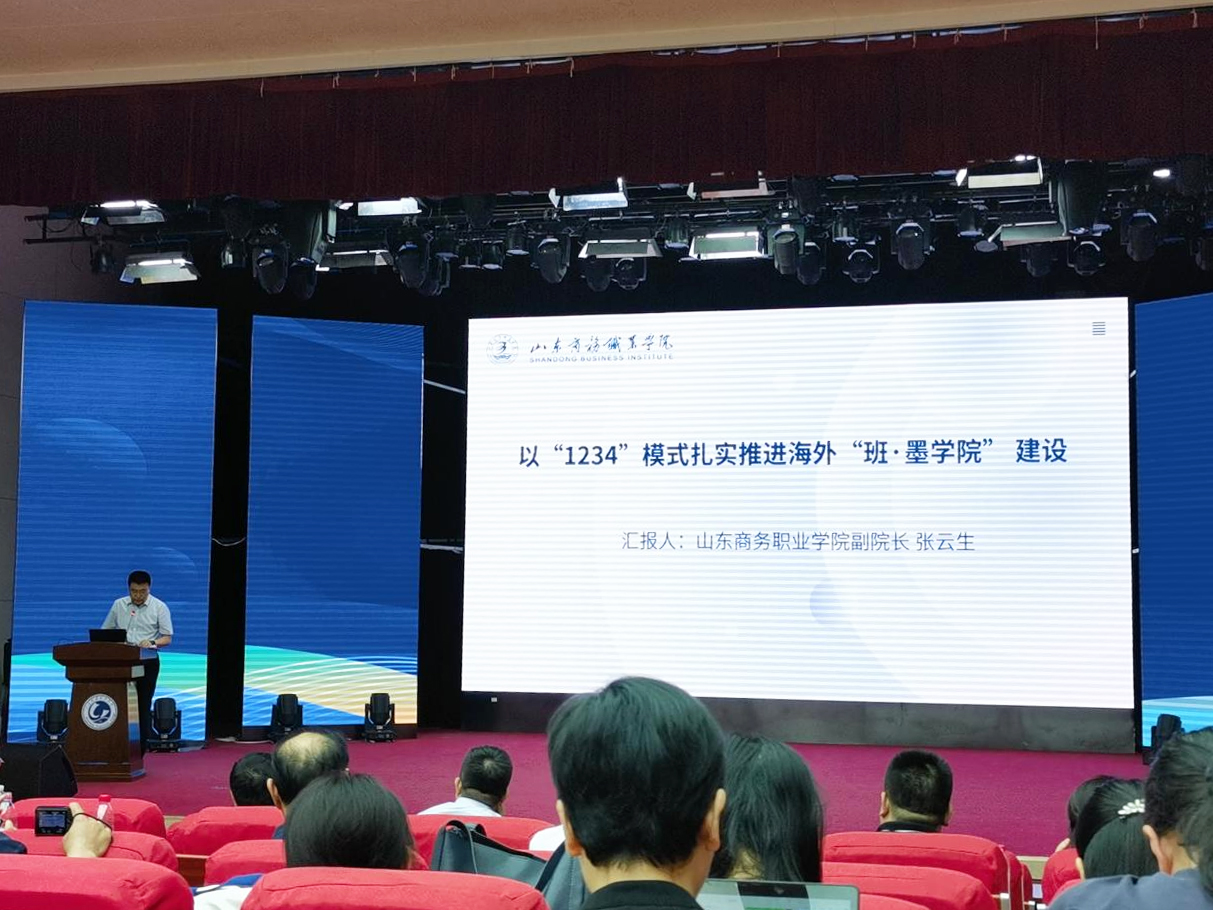 本站讯 6月14日,在山东省教育厅的指导下,由山东理工职业学院和海外“班·墨学院”建设工作委员会主办,有色金属工业人才中心协办的全省职业教育海外“班·墨学院”建设工作交流活动在山东理工职业学院举行。教育部职业教育发展中心主任林宇,有色金属工业人才中心党委副书记、副主任宋凯,山东省教育厅总督学王志刚,山东省教育厅国际交流与合作处处长王夫海,山东省教育厅职业教育处处长陈志浩等领导和山东高职院校相关负责同志及参与海外“班·墨学院”建设的企业代表出席了活动。