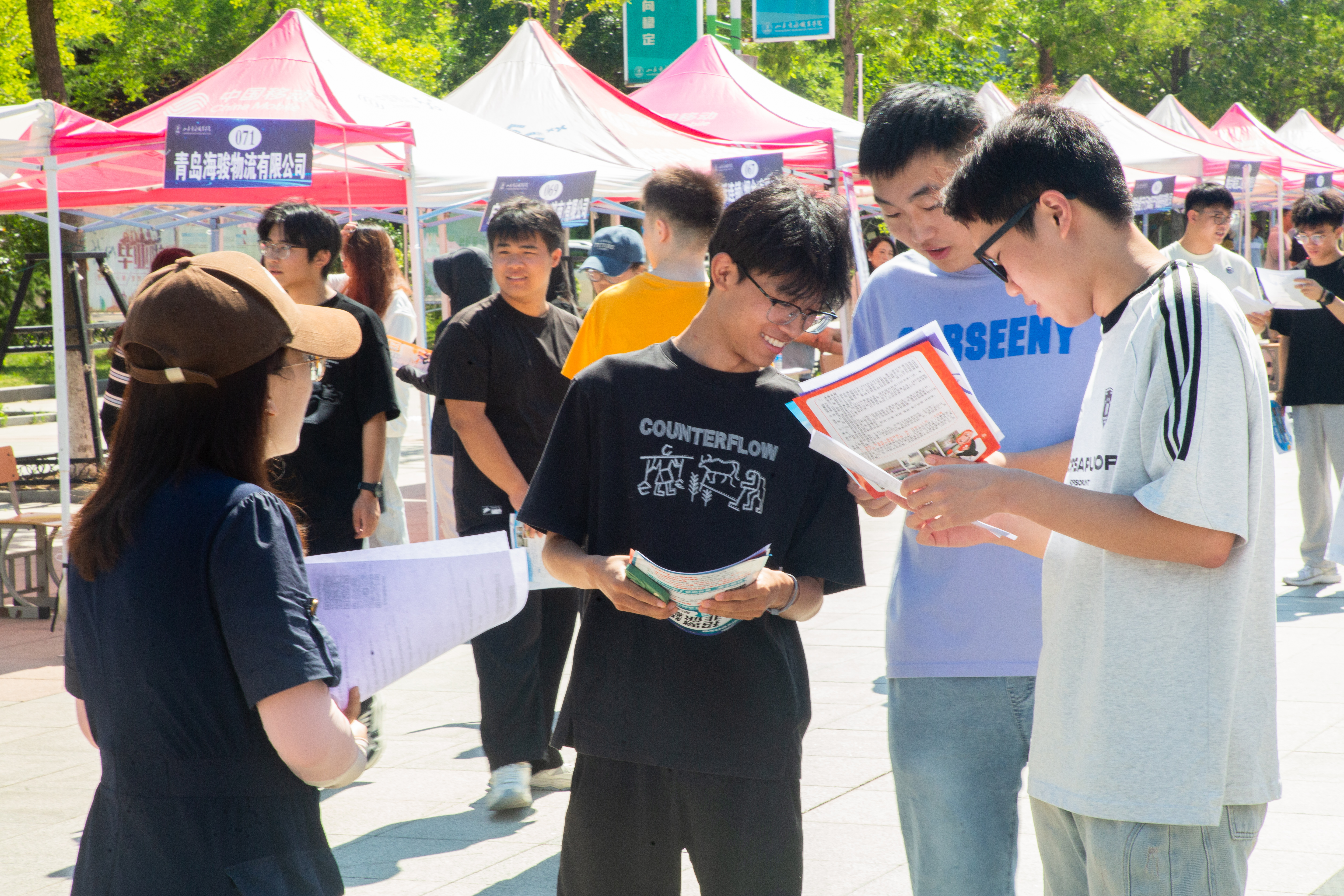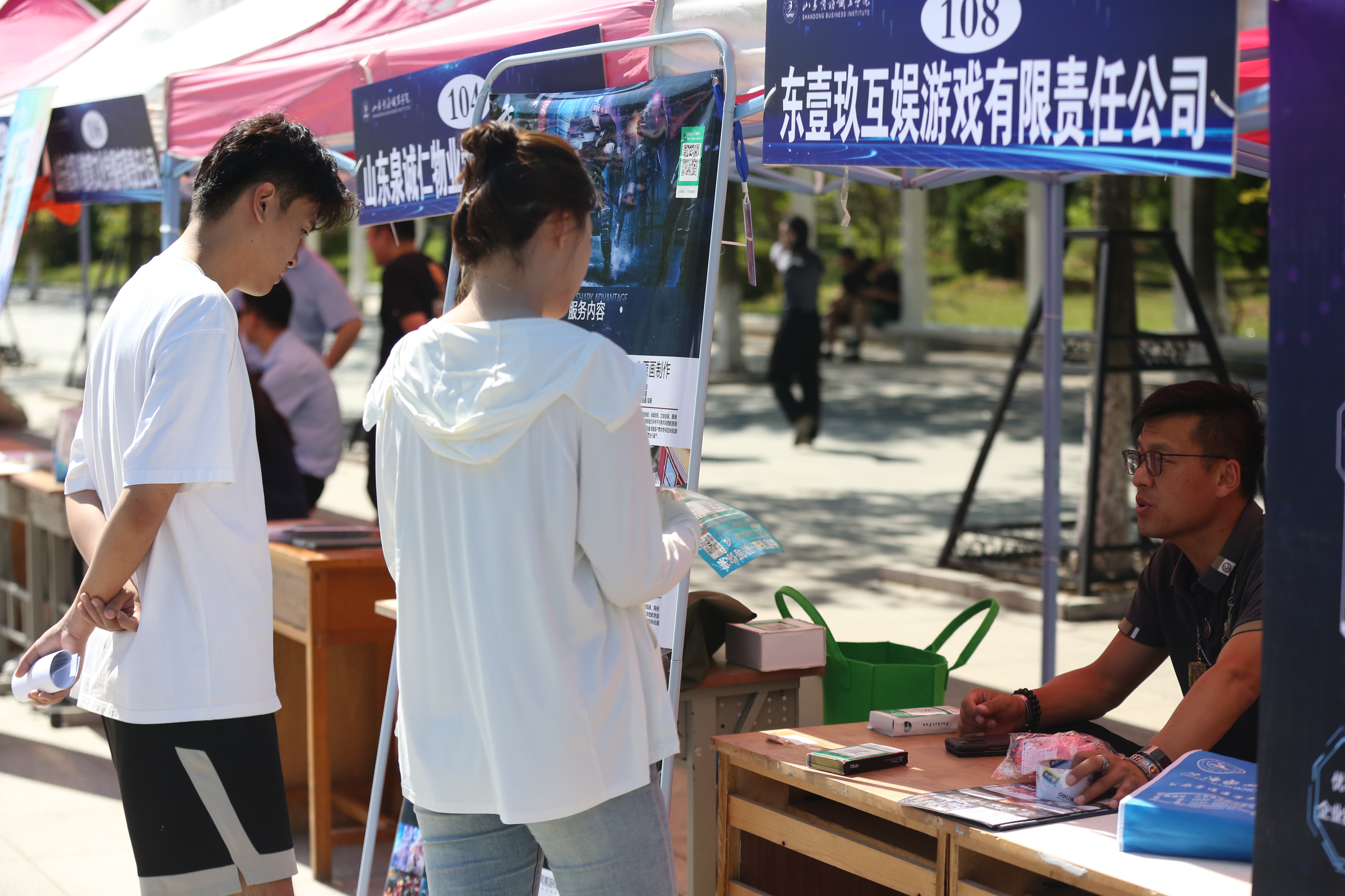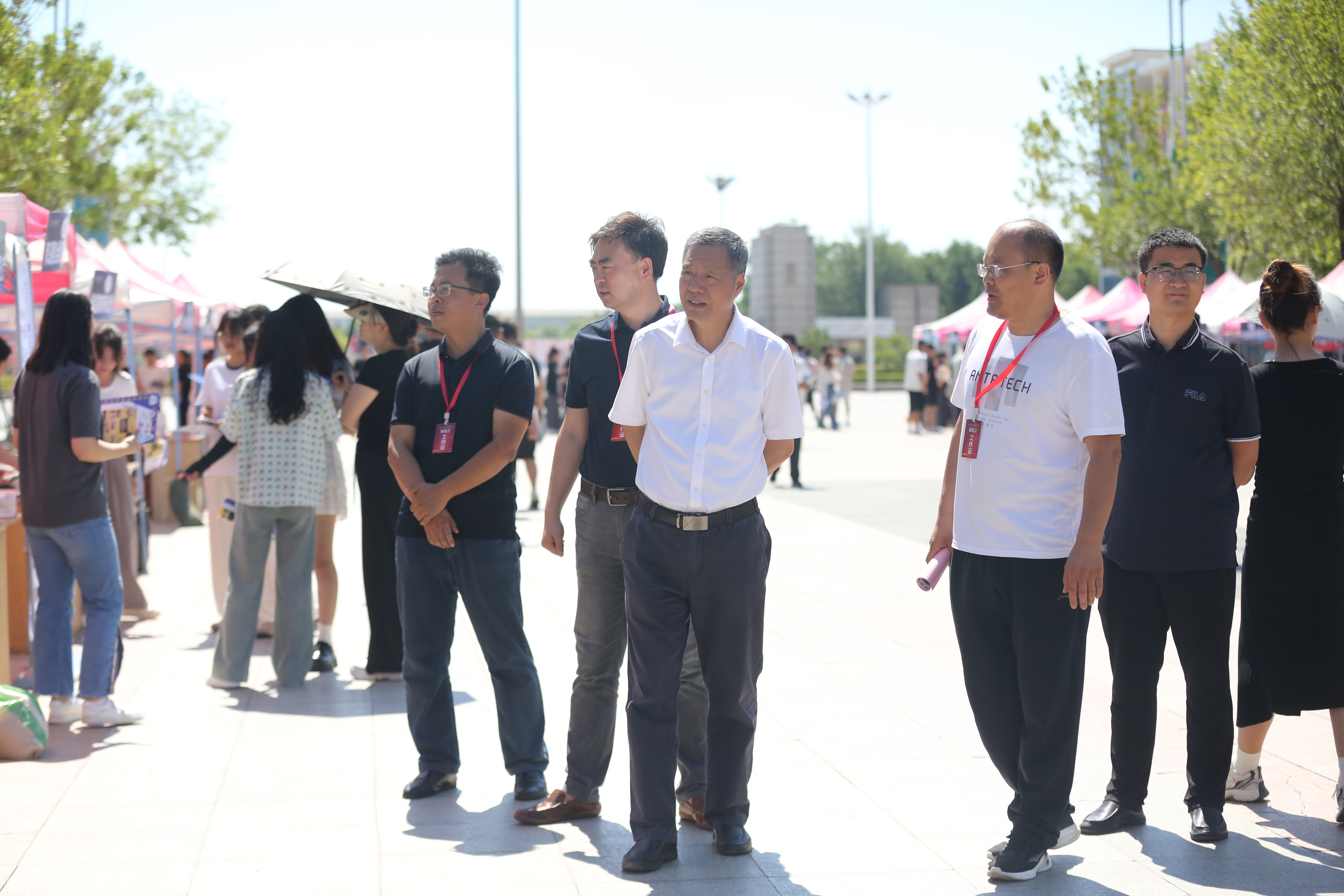 本站讯 6月25日,全省135家优质企业齐聚校园,把岗位送进学校,助力我校学生毕业即就业。本次双选会由山东省人力资源和社会保障厅指导,在学校中心大道举办,学校党委副书记、校长王发明莅临现场指导,校企合作与就业工作处以及各二级学院负责人与用人单位深入沟通交流,向用人单位推介毕业生。据悉本次招聘会提供就业岗位4500余个。