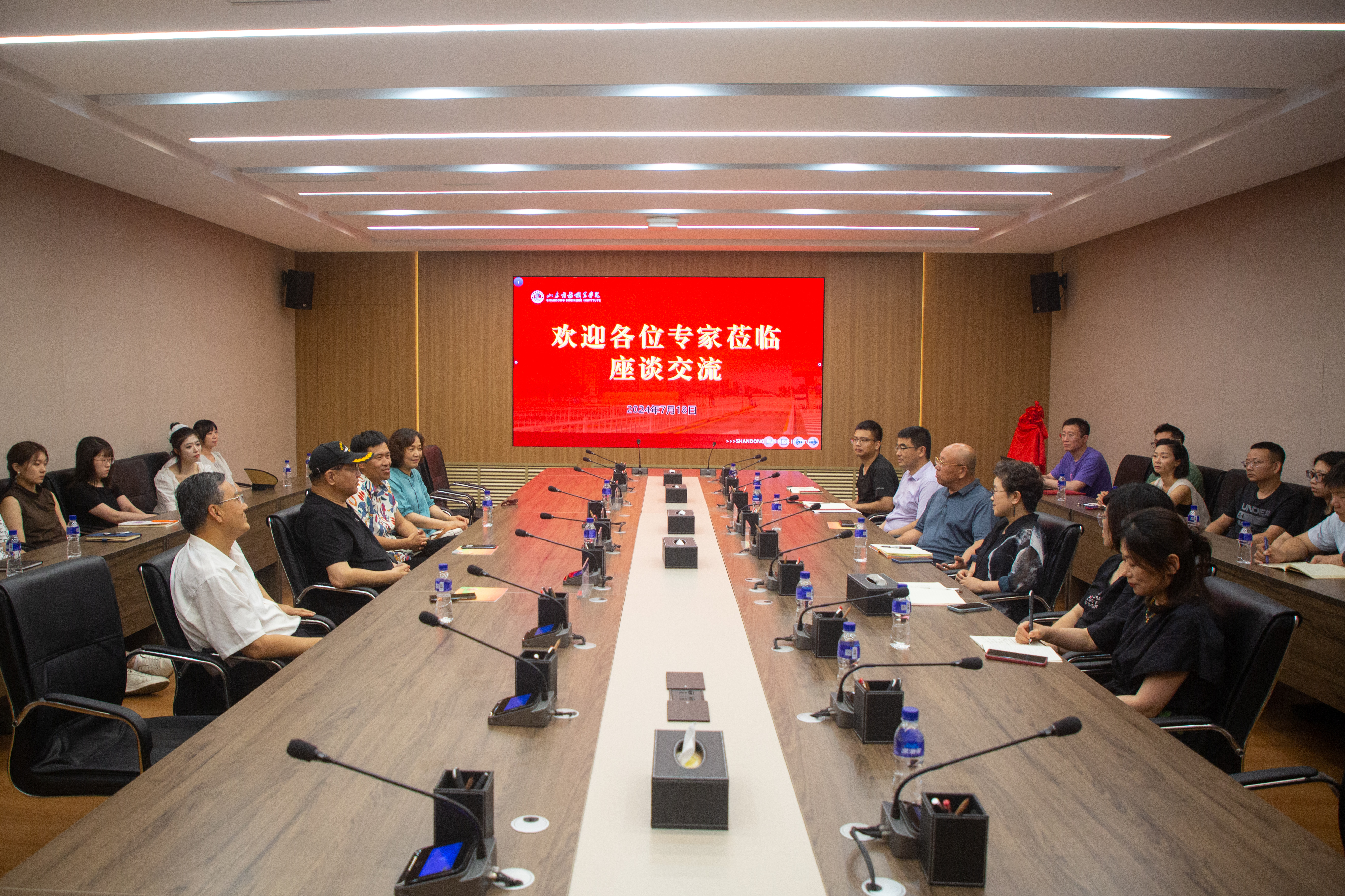 随后,受邀专家与教师代表围绕教育创新、科研合作、文化传承、校企合作等议题展开了热烈的座谈交流。专家们纷纷发表了自己的看法和见解。尹浩洋教授从“走出去”和“引进来”两个方面进行了分享,他表示要鼓励学生走出去,多参加校外实践活动,在实践中不断汲取新的知识,同时也要把专家学者引进来,不断丰富学生的文化底蕴;王相俊教授从文创产品领域入手,结合文创产品的开发、文化符号的传播、文化创意的深入挖掘、文化与市场的结合等方面,对当代文旅产品进行了系统阐述;吴忠波教授结合个人经历分享了文化传承和创新项目方面的宝贵经验,他以烟台的日出文化、海防文化等为例,阐释了如何深挖文化传承的内涵,不断发掘其深层的价值和意义。