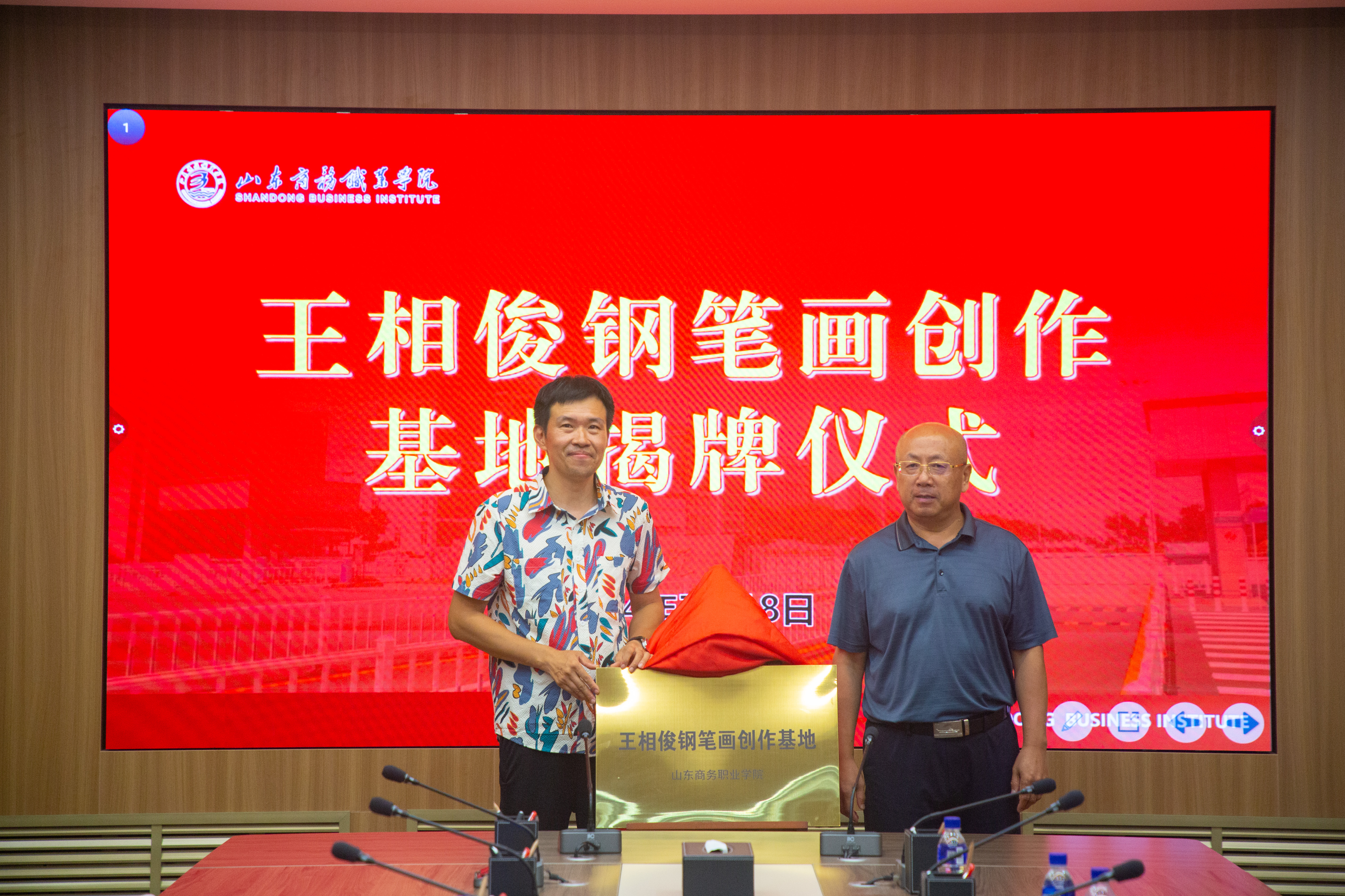 本站讯 7月18日,我校举行客座教授证书颁发、王相俊钢笔画创作基地揭牌仪式。烟台华夏文化促进会研究员、烟台市作协副秘书长尹浩洋,烟台美术家协会理事、烟台黄海艺术博物馆副馆长王相俊,山东文旅创新研究院智库专家、砣矶岛非物质文化遗产展览馆名誉馆长吴忠波受邀参加仪式。学校党委委员、副校长陶传蔚,相关二级学院负责人和教师代表参加活动。