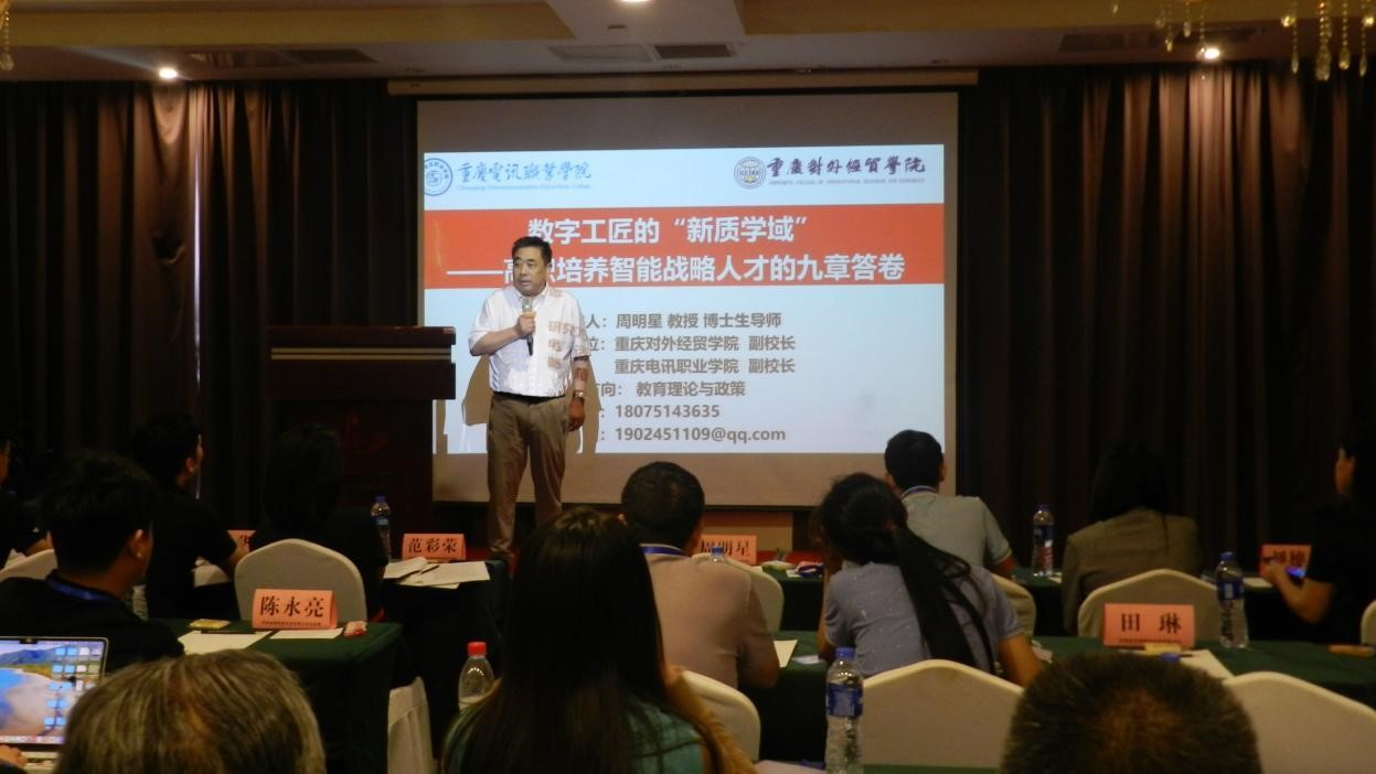 国家二级教授、教育学博士、重庆对外经贸学院副校长周明星以《数字工匠的“新质学域”高职培养智能战略人才的九章答卷》为题进行演讲,提出以职业教育“跨界融合”教学理论为基础,形成“新质学域”教学范式,即“铸魂立心(文、耕、武)”的思想领域、“劝学厚识(技、艺、道)”的教学界域、“实战富能(工、研、创)”的真实场域集合成“九章”教学范式,周教授的教育经验被中央电视台等媒体报道宣传,为扩大数字工匠教育的社会影响力贡献了力量。
