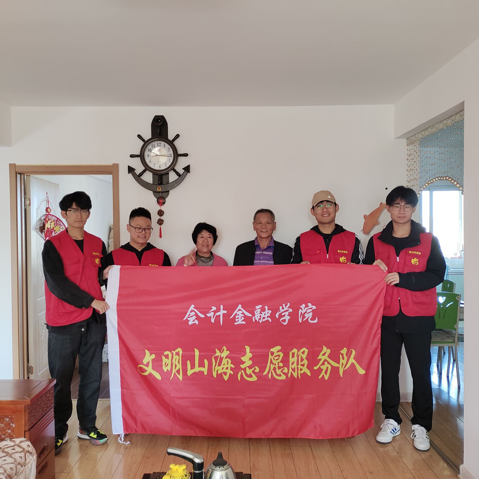 深耕实践育人,让青年与社会紧密衔接。在党组织领导下,会计金融学院团总支依托“大学生宣讲团”“文明山海志愿服务队”“康安公益志愿服务队”,广泛开展扶老助残、关爱留守儿童、生态环保、普法宣传、防诈反诈等常态化服务项目,打造“文明山海”志愿服务品牌,开展初家街道、解甲庄街道162名老人走访活动、“扶苗公益”捐书行动、“走进沂蒙”革命精神寻访活动等,全面发挥青年志愿服务实践育人功能。