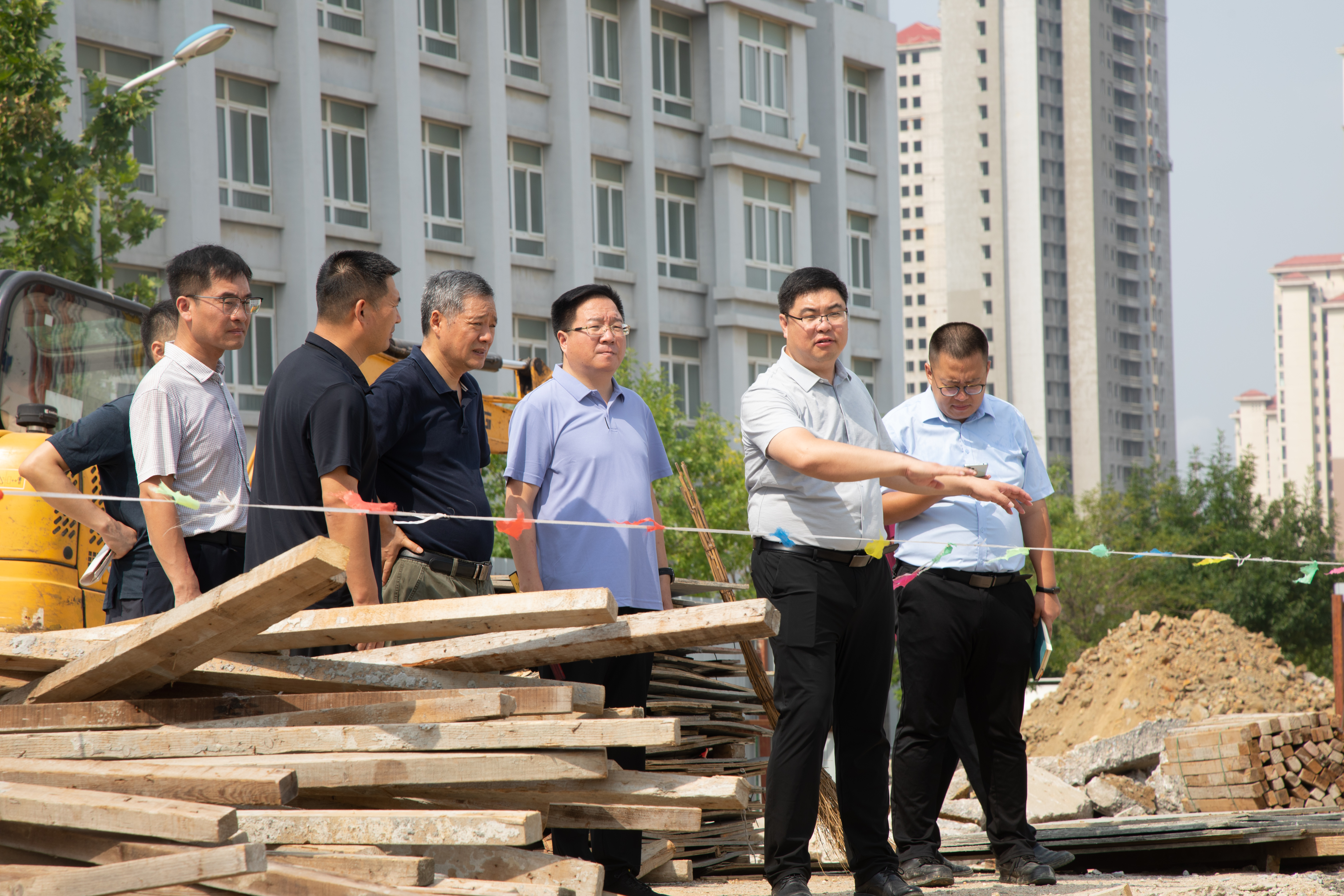 本站讯 为全面提升学校基础办学条件,营造更为舒适、安全的学习生活环境,学校利用暑假开展海绵城市改造、学生公寓基础设施修缮改造等工程。8月15日,党委副书记、校长王发明,党委副书记张越及宣传统战部、后勤服务处、安全保卫处等相关部门负责人,深入校园基建项目、维修改造项目施工现场,检查施工安全、工程质量和工程进展情况。