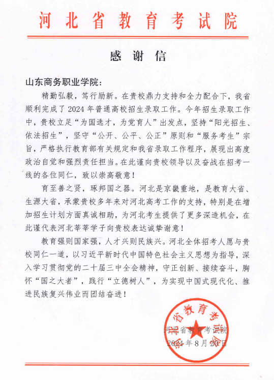 阳光高考,公平公正铸口碑。学校科学编制分省分专业招生计划,全面组织开展招生宣传服务。招生录取期间,校领导多次实地现场指导督查招生录取工作,招生工作人员从严落实教育部和省级招生部门的相关文件精神,按照学校招生章程、招生计划进行招生录取,严格阅档程序,实现招生录取“零”失误。