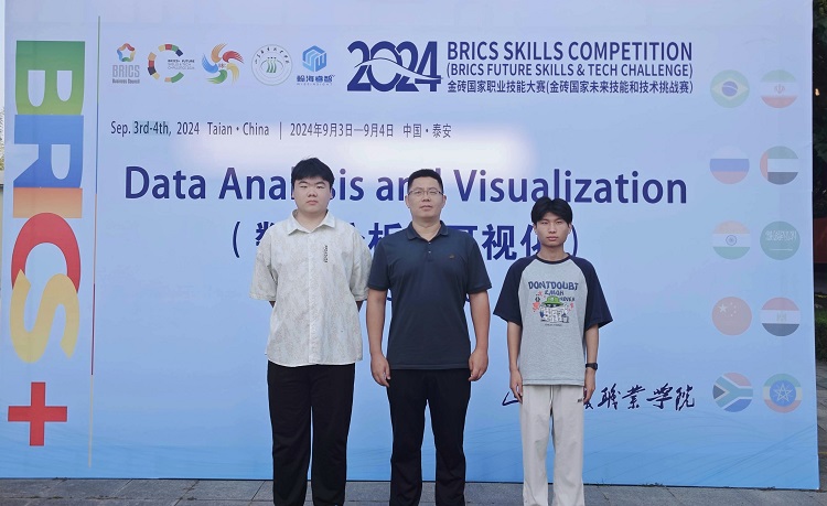 本站讯 9月3日至4日,2024金砖国家职业技能大赛数据分析与可视化省赛选拔赛在山东服装职业技术学院举行。该赛项由我校信息工程学院教师庄福宝带队,学生郑庆儒、张洲旗参赛。郑庆儒同学晋级国赛。