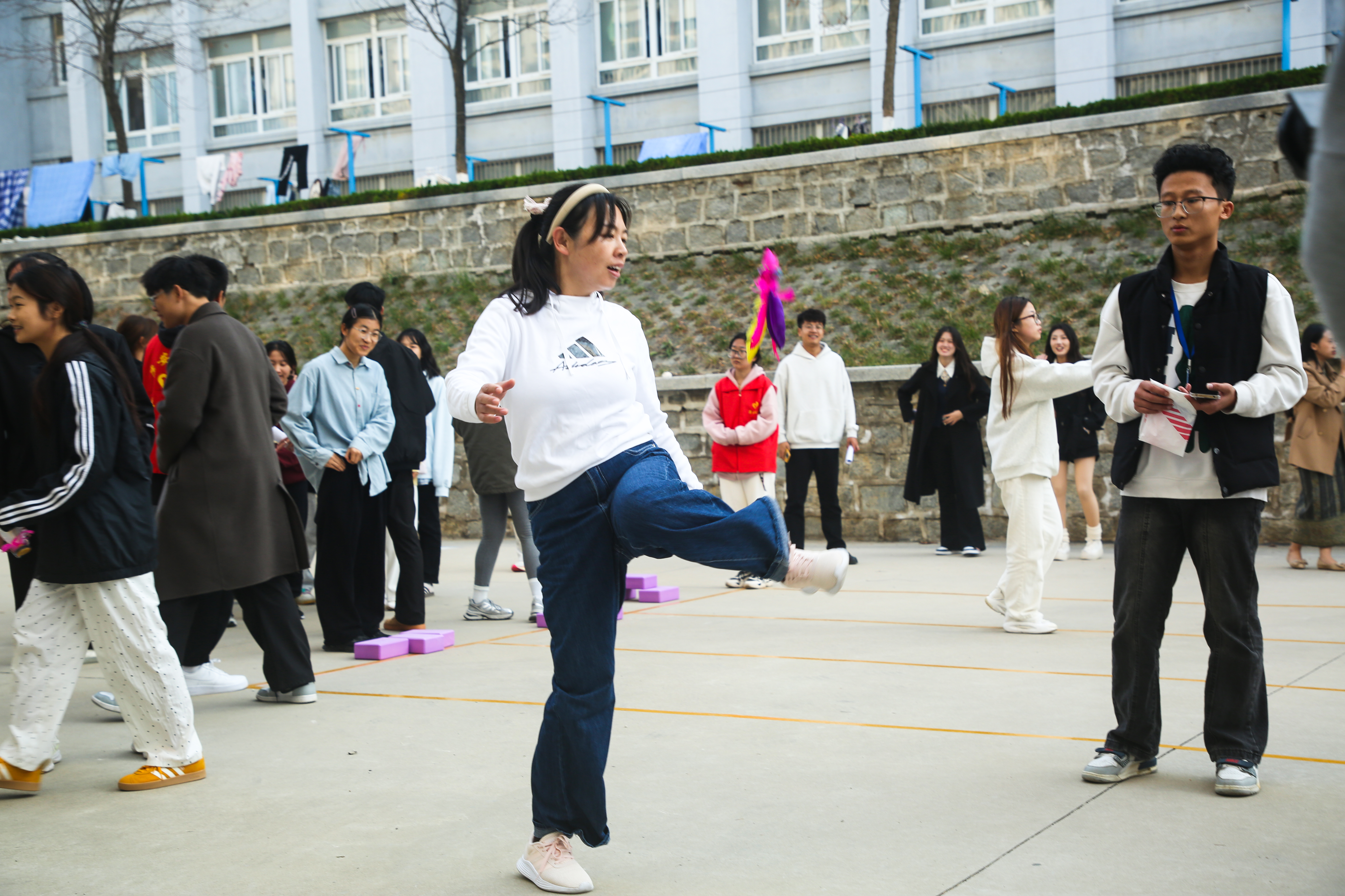 本站讯 为增强学生身体素质,提升社区凝聚力,11月12日下午,学校第一届“一站式”社区运动会决赛在笃行苑前广场举行,全体在校生、来自塔吉克斯坦、老挝等国40余名留学生以及社区辅导员老师等参加了比赛。