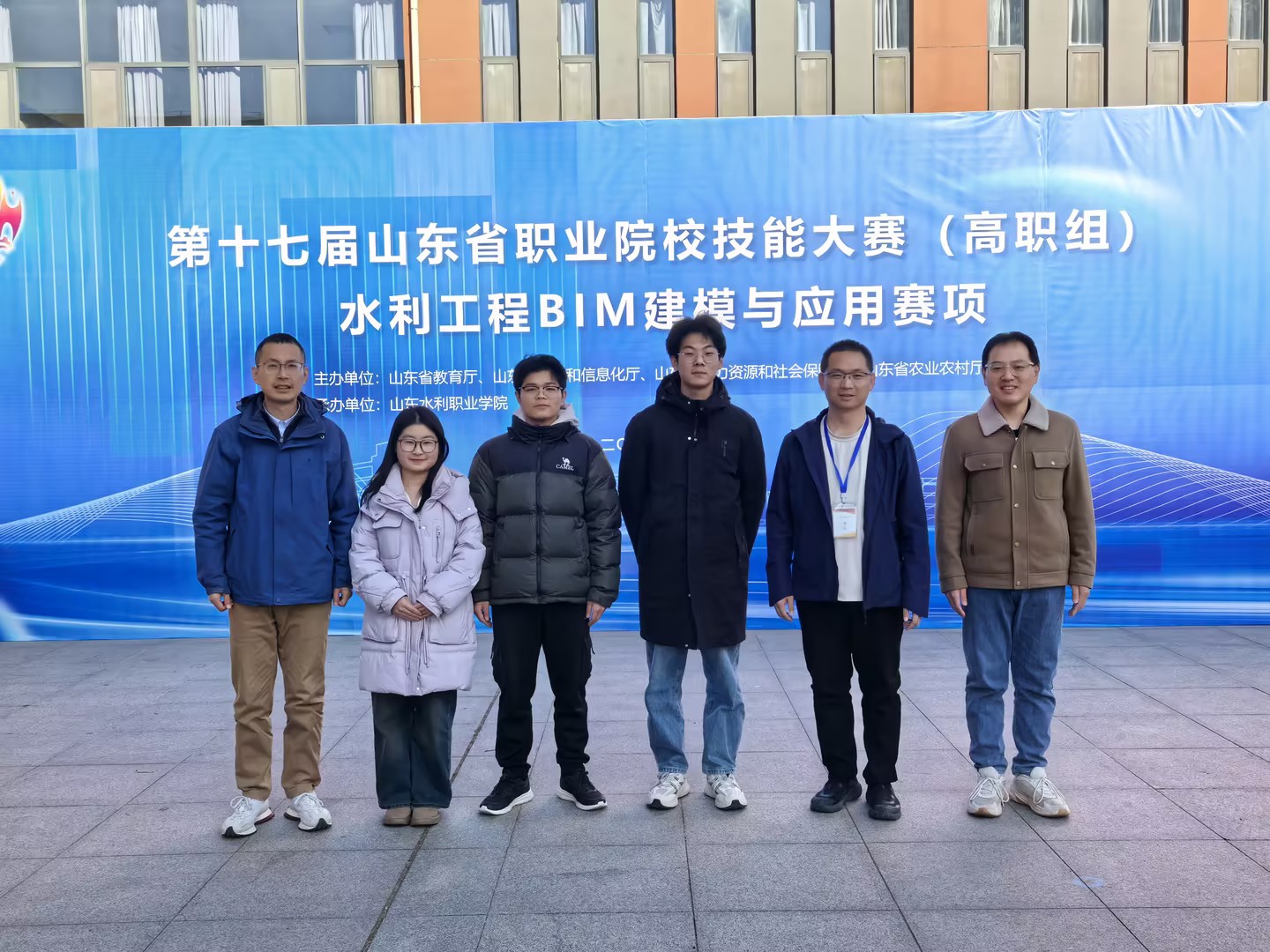本站讯 12月13日至15日,由山东省教育厅主办的第十七届职业院校技能大赛(高职组)“水利工程 BIM 建模与应用”赛项在山东水利职业学院举办,我校建筑工程学院学生王犇、孙文颖、袁硕组成的代表队喜获一等奖。