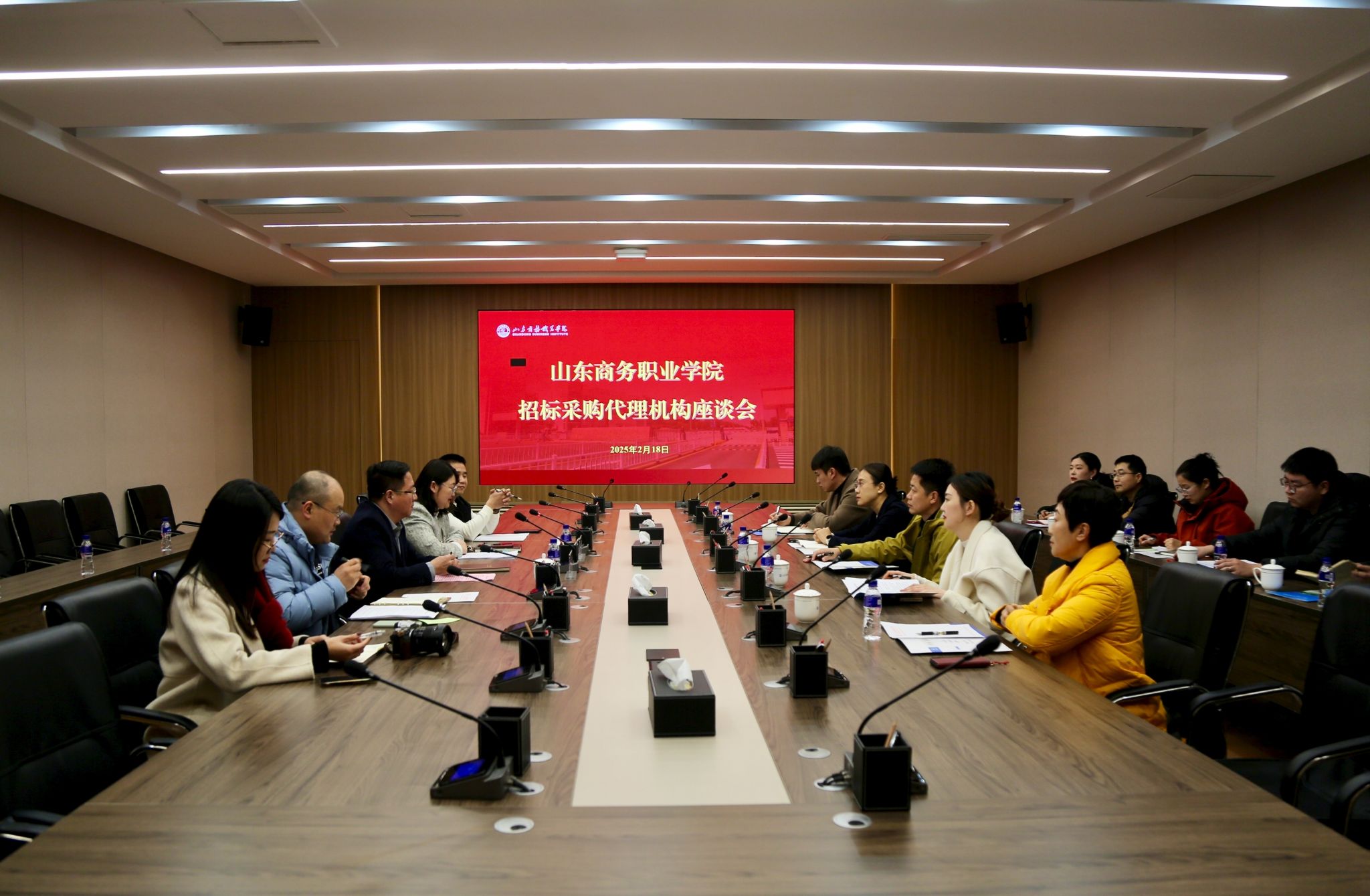 张越指出,目前服务于我校的五家代理机构在山东省财政厅公布的2024年代理机构服务业绩中均榜上有名,部分单位更是名列前茅。鉴于今年是代理机构服务期的最后一年,希望各代理机构能够继续保持高昂的服务姿态,真正做到任务不打折、时间不迟滞、标准不降低,以专业的服务能力一如既往地支持、配合学校资产管理处的工作开展,共同推动学校招标采购工作迈上新台阶。