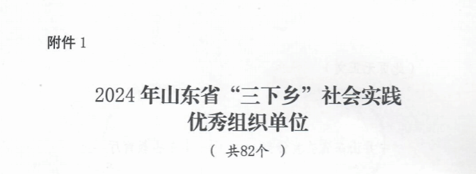 本站讯 近日,中共山东省委宣传部、山东省教育厅、共青团山东省委、山东省学生联合会发布《关于“调研山东”—2024年山东省大中专学生志愿者暑期“三下乡”社会实践活动的通报》,我校团委荣获山东省“三下乡”社会实践优秀组织单位,6名学生获评优秀学生、4名教师获评优秀指导教师、2支团队获评优秀实践团队、1个项目获评特色品牌项目。