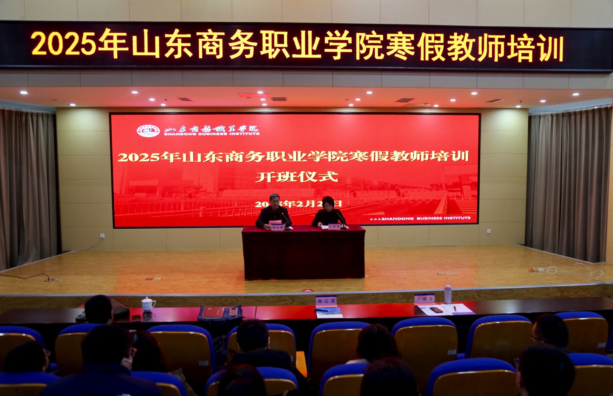 学校党委书记孙云茂在开班仪式上作动员讲话,党委副书记、校长王发明作总结讲话,会议由学校党委委员、副校长于邢香主持,各二级院部院长(主任)、分管教学、科研、校企合作、培训、教师发展工作的副院长(副主任),各专业带头人(负责人)、公共课负责人以及各专业4名骨干教师,职能部门兼课教师近300人参加培训。