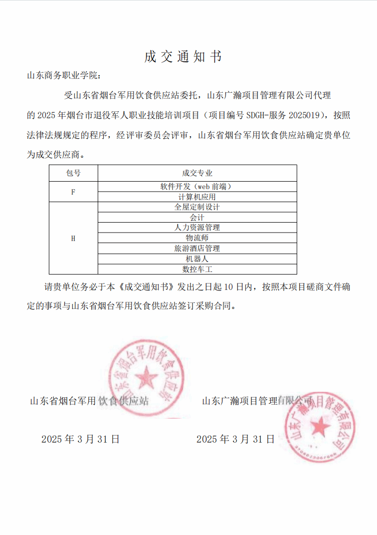 本站讯 近日,烟台市退役军人职业技能承训机构入选通知发布,我校成功入选。本次入选包括软件开发(web 前端)、计算机应用、全屋定制设计、会计、人力资源管理、物流师、旅游酒店管理、机器人、数控车工等9个培训项目。