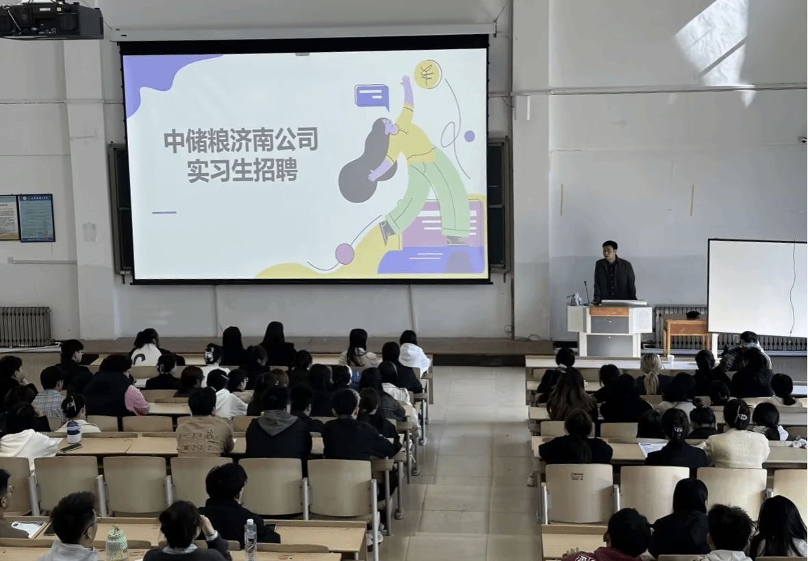 近日,中储粮济南库、青岛库等6家单位组成的“国企就业宣讲团”走进校园。宣讲会开始前,200人的会场已坐满大一和大二的学生,同学们纷纷递交简历争取面试机会。