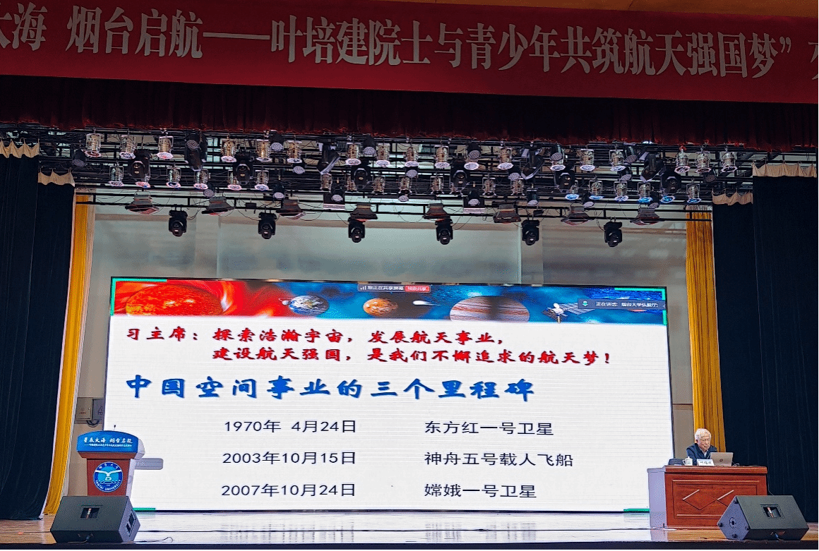 本站讯 近日,由共青团烟台市委、烟台市教育局、烟台市科协、山东航天电子技术研究所等单位主办,烟台大学承办的“星辰大海 烟台启航—叶培建院士与青少年共筑航天强国梦”交流活动在烟台大学举办。我校作为烟台高新技术产业开发区航空航天产教联合体牵头单位,受邀组织师生代表参与活动,与叶培建院士及航天领域专家共话航天精神,深化产教融合,为区域航空航天产业高质量发展注入新动能。