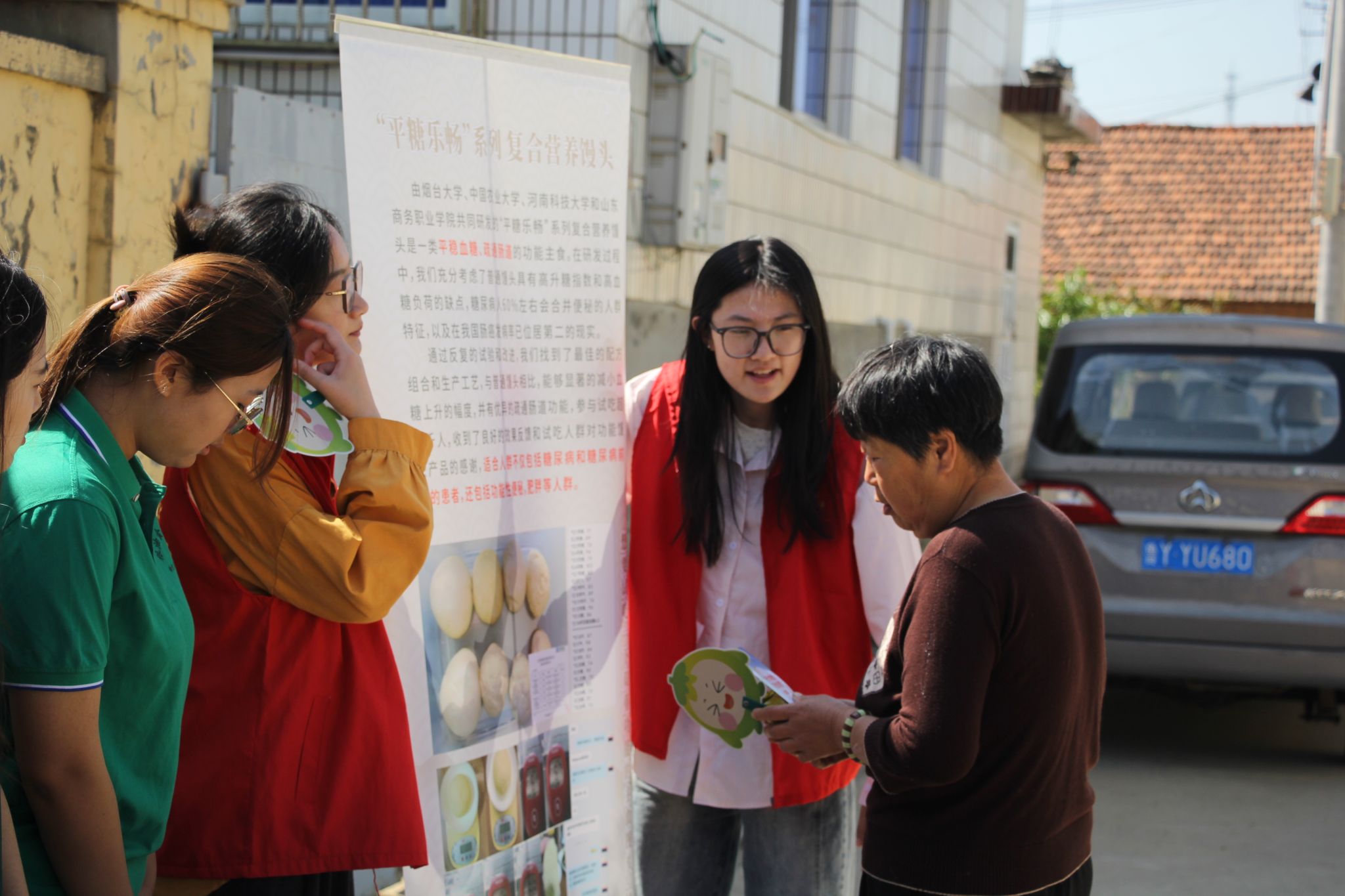 在村委会广场搭建的“粮安果技云课堂”成为政策与技术的传播枢纽。以“粮食安全是‘国之大者’”为主题开展专题宣讲,结合烟台当地粮食生产特点,通过“粮食的一生”故事化讲解模式,系统解读从种子培育到餐桌消费的全链条安全要点。现场重点演示科学储粮技术,通过对比实验展示合理膳食对减少粮食浪费的实际效果,同步科普食品安全鉴别技巧及高血压、糖尿病等慢性病的饮食预防知识,累计覆盖村民200余人次,筑牢“粮食安全人人有责”的思想共识。