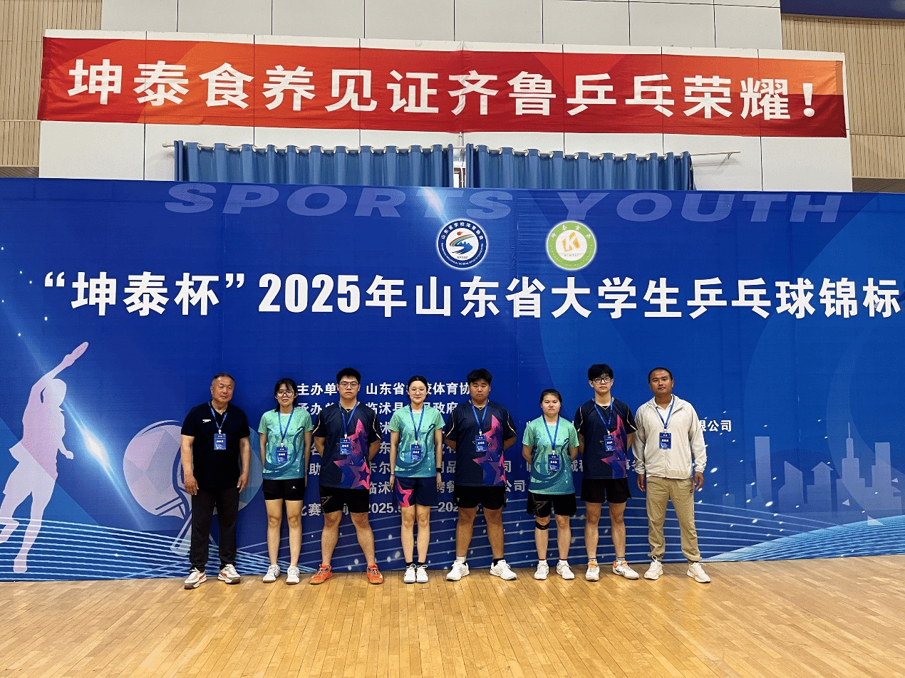 本站讯 5月17日至23日,由山东省学校体育协会主办、临沭县人民政府承办的山东省大学生乒乓球锦标赛在临沭县体育馆火热开赛。来自全省 34 支高校代表队的 251 名运动员同场竞技,我校选派 6 名运动员组成代表队,全力角逐乙组全部赛事项目。经过 6 天激烈比拼,我校运动健儿凭借扎实的技术与顽强的斗志,获得女子单打第 4 名,女双第 4 名;混双第 7 名;女子团体第 7 名的优异成绩。