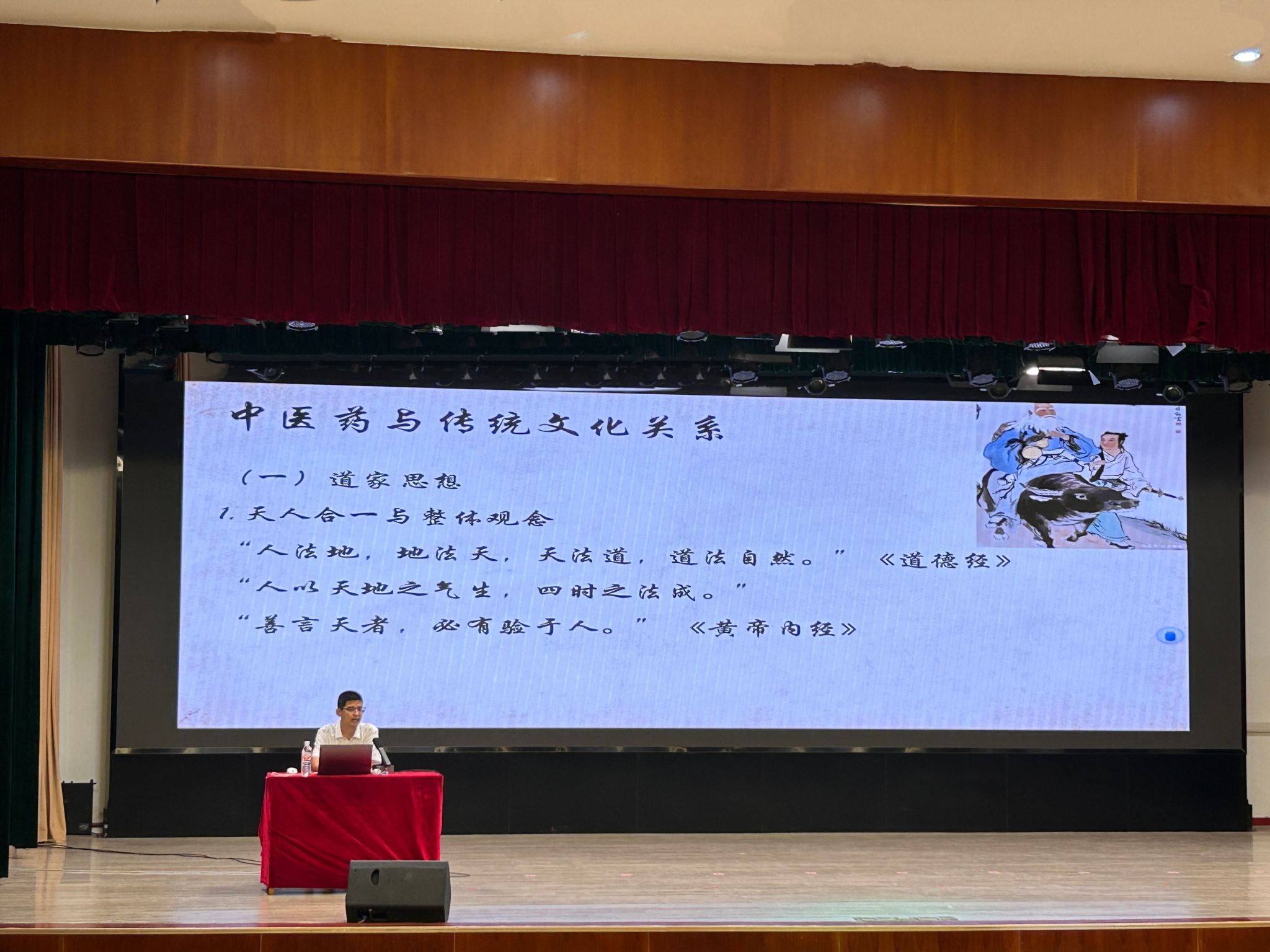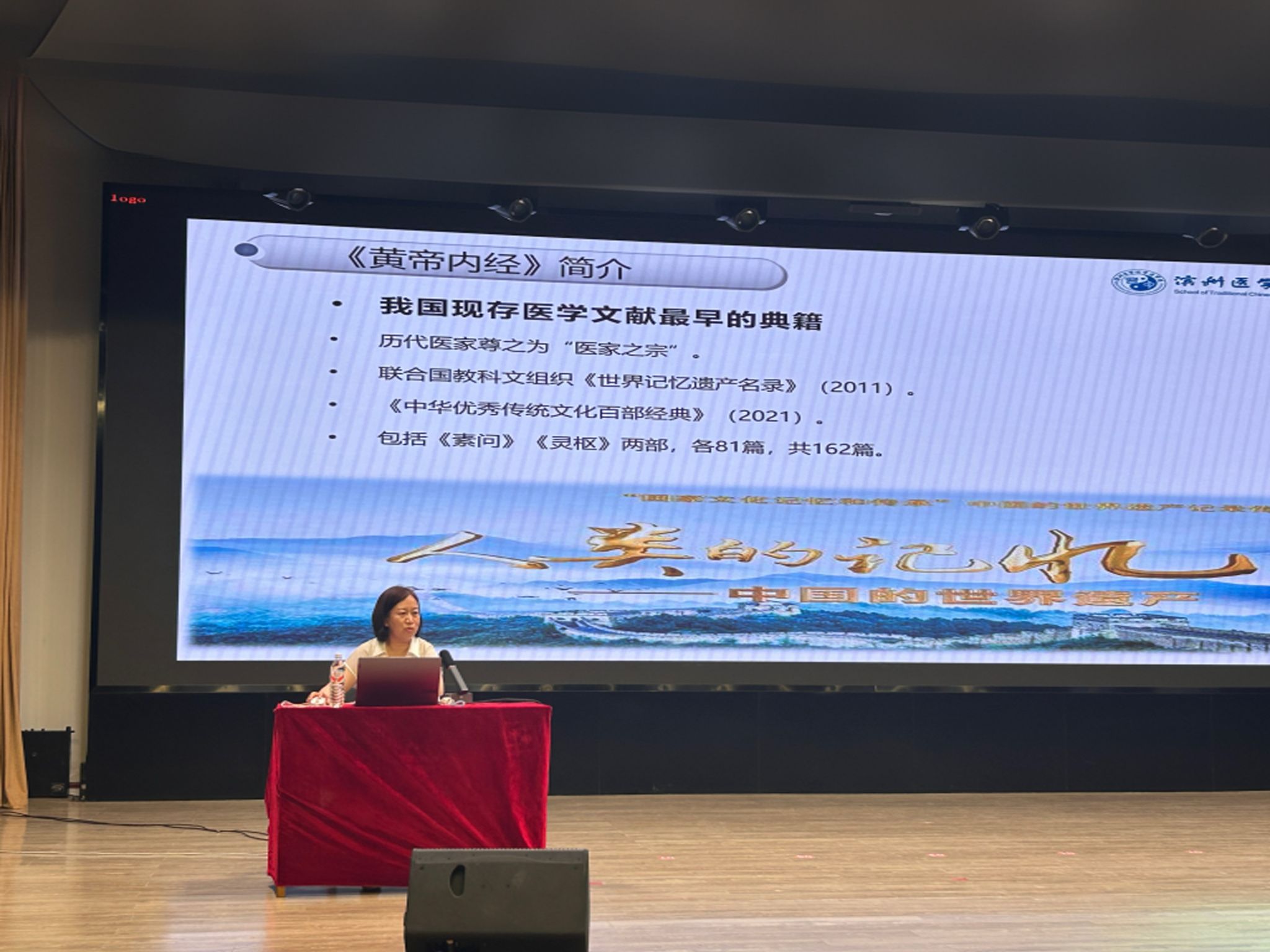 丁晓洁副教授以《夏季养阳,冬病夏治—— 黄帝内经中的养生智慧》为题,带领同学们“穿越千年”,走进《黄帝内经》所构建的生命体系与养生智慧。她以通俗易懂的语言、生动的案例,讲解了“天人合一”“阴阳平衡”等核心理论,引发在场师生对中华传统文化深层次的兴趣与共鸣。现场气氛热烈,同学们纷纷表示,通过本次活动不仅加深了对中医药文化的理解,也激发了对中华优秀传统文化的热爱,增强了文化自信。