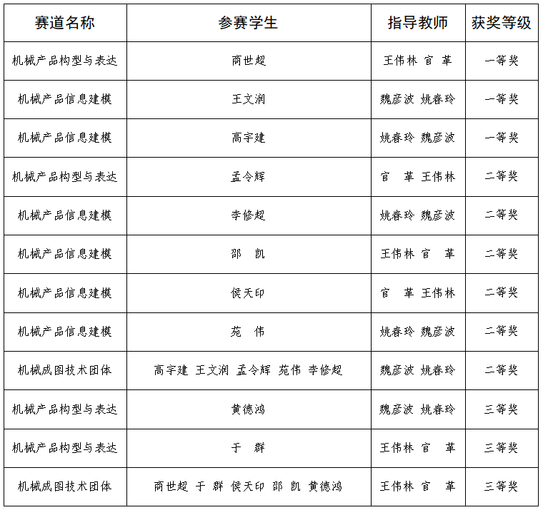 本站讯 近日,第十七届山东省大学生科技节—山东省大学生先进成图技术与产品信息建模创新大赛暨第十八届全国大学生先进成图技术与产品信息建模创新大赛山东赛区预选赛在烟台举办。我校智能制造学院10位同学参加比赛,共获得一等奖3项,二等奖6项,三等奖2项,机械产品构型与表达获得团体二等奖,机械成图技术获得团体三等奖。