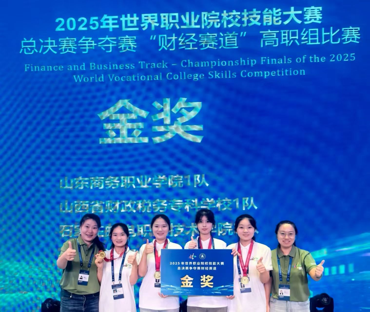 本站讯 8月25日至29日,2025年世界职业院校技能大赛总决赛争夺赛财经赛道在山西财政税务专科学校举行,由我校会计金融学院学生王羽晗、郝若彤、朱如欣、吴寒雪组成的代表队,与来自全国各省、市、自治区的206支参赛队伍共800多名选手同场竞技,以自信昂扬的精神状态、扎实过硬的专业素养成功斩获金奖,这也是我校继2023年和2024年两年获得全国职业院校技能大赛“智慧金融”赛项一等奖之后,又一次蝉联该赛项最高奖项。